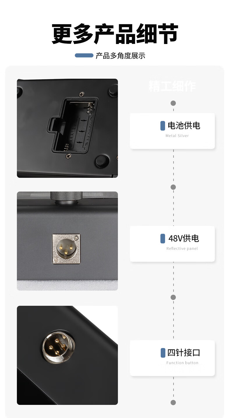 包装清单: 保修卡、合格证、(8米)卡侬公母线×1、(0.5米)卡侬公母转6.5线×1
