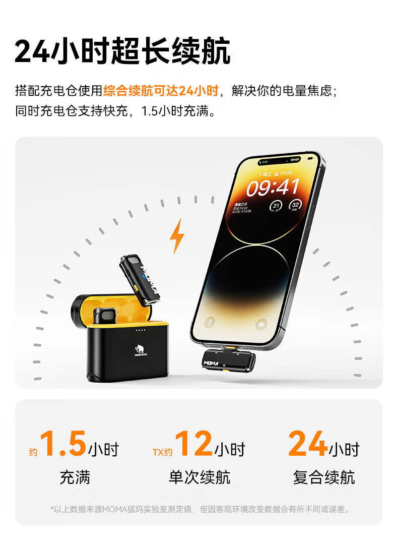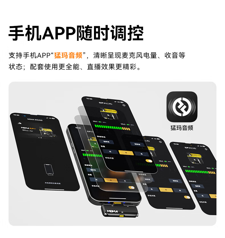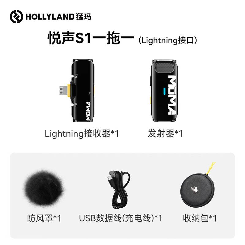 • 商品名称:猛玛悦声S1无线领夹麦克风 苹果手机直播MOMA猛犸s1麦克风直插话筒vlog户外采访声卡降噪长续航收音麦 悦声 S1/件