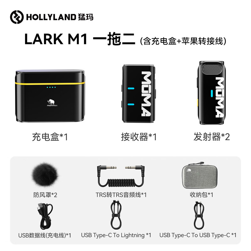 商品名称: 猛玛LARK M1无线麦克风 手机直播降噪领夹麦 MOMA猛犸m1一拖二话筒vlog采访户外直播苹果手机收音麦 Lark M1/件