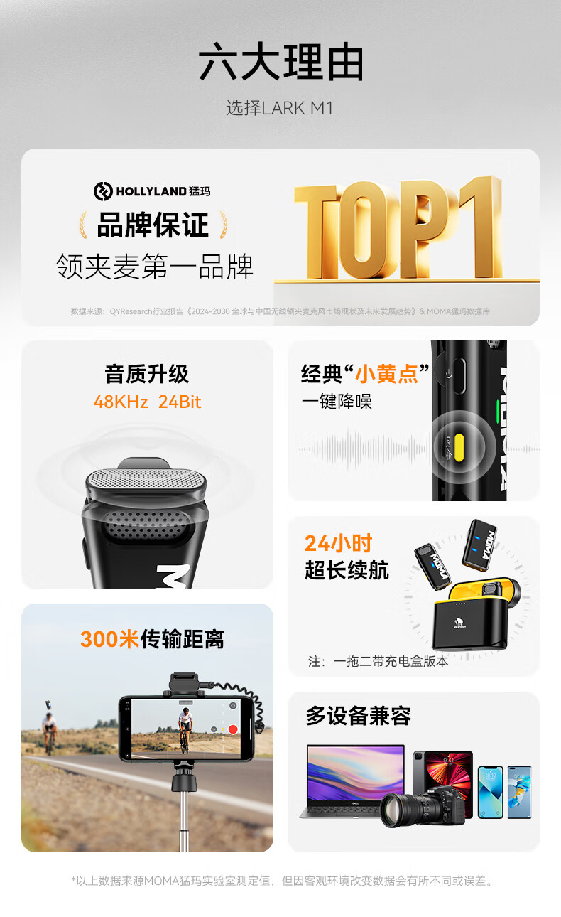 • 商品名称:猛玛LARK M1无线麦克风 手机直播降噪领夹麦 MOMA猛犸m1一拖二话筒vlog采访户外直播苹果手机收音麦 Lark M1/件
