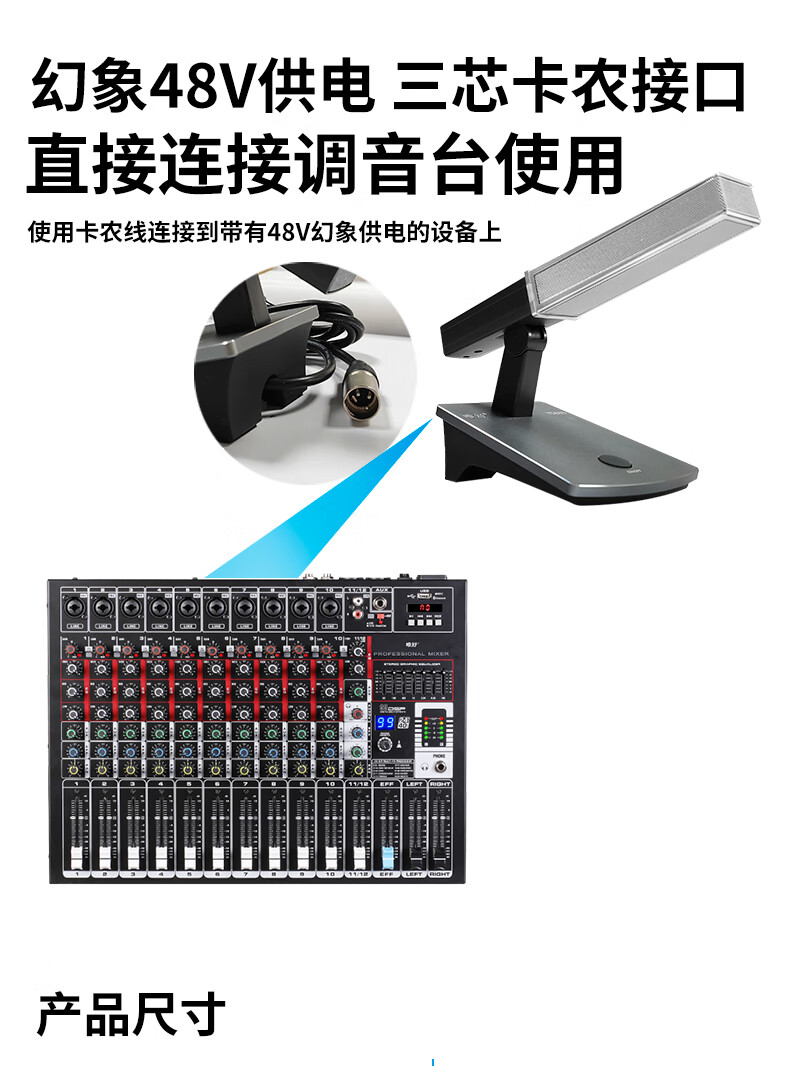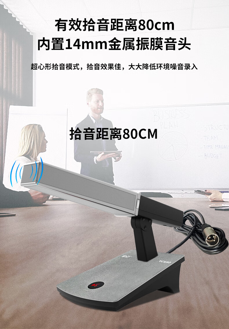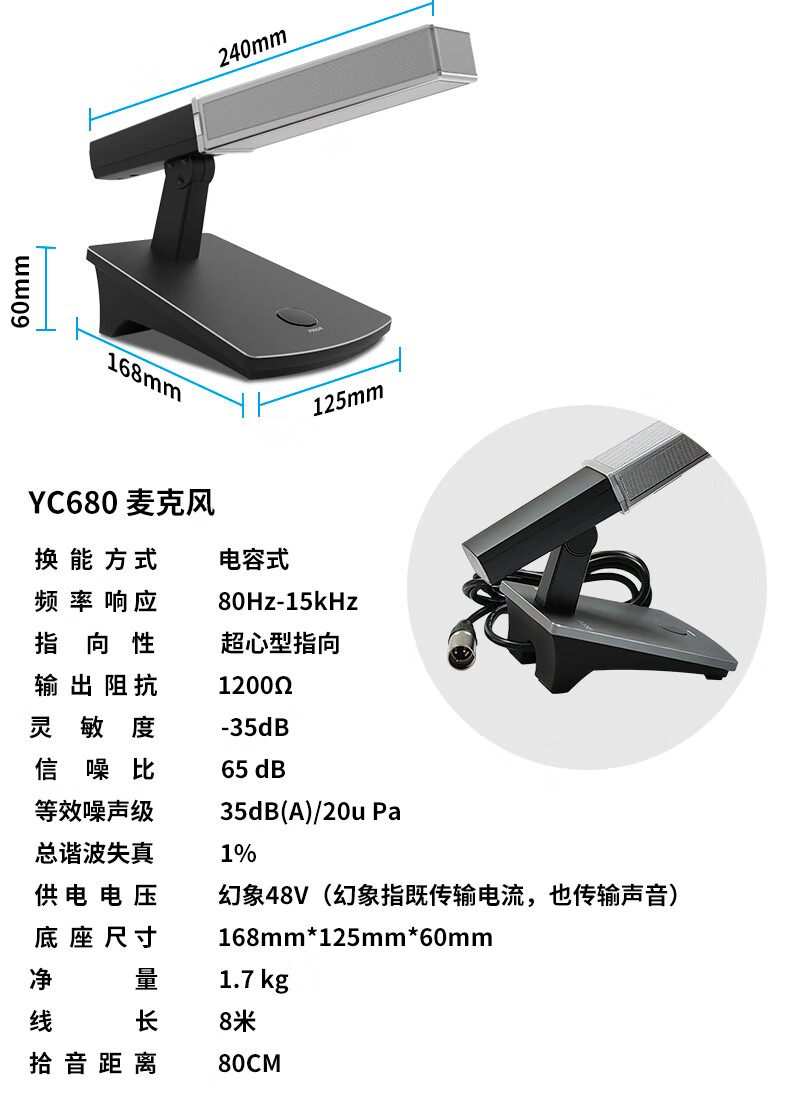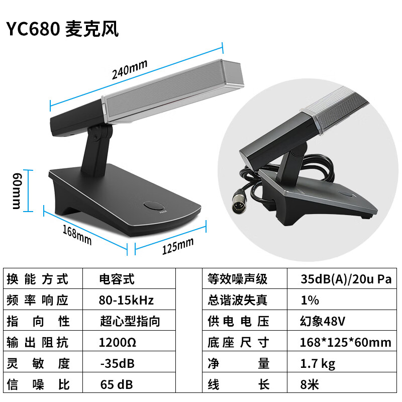 • 商品名称:唯舒 YC680 有线电容麦克风卡农口卡侬接口专业会议高端会议桌面方管款90度可调节话筒可定制接口 YC680/只