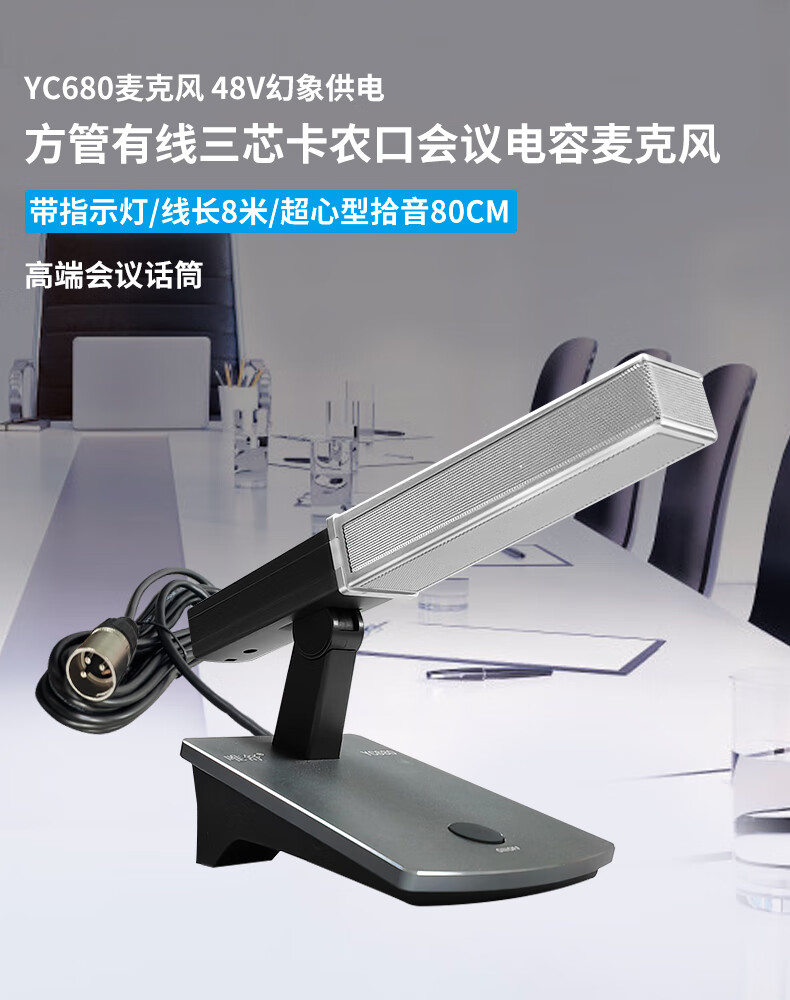数码  > 影音娱乐  > 麦克风  >  唯舒  >  唯舒 YC680 有线电容麦克风卡农口卡侬接口专业会议高端会议桌面方管款90度可调节话筒可定制接口 YC680/只
