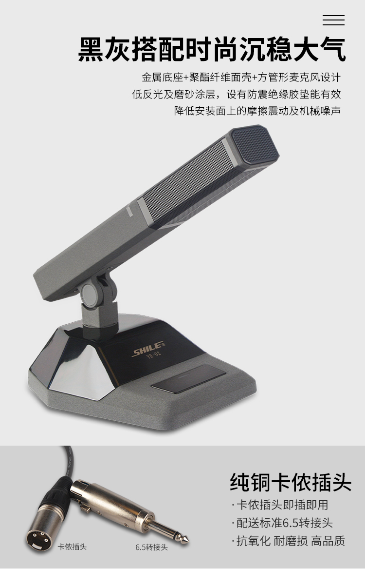 • 商品名称:狮乐(SHILE)会议室有线话筒独立单支接功放调音台用 电容心型指向桌面方管短杆麦克风 YE-02 版 YE-02/支