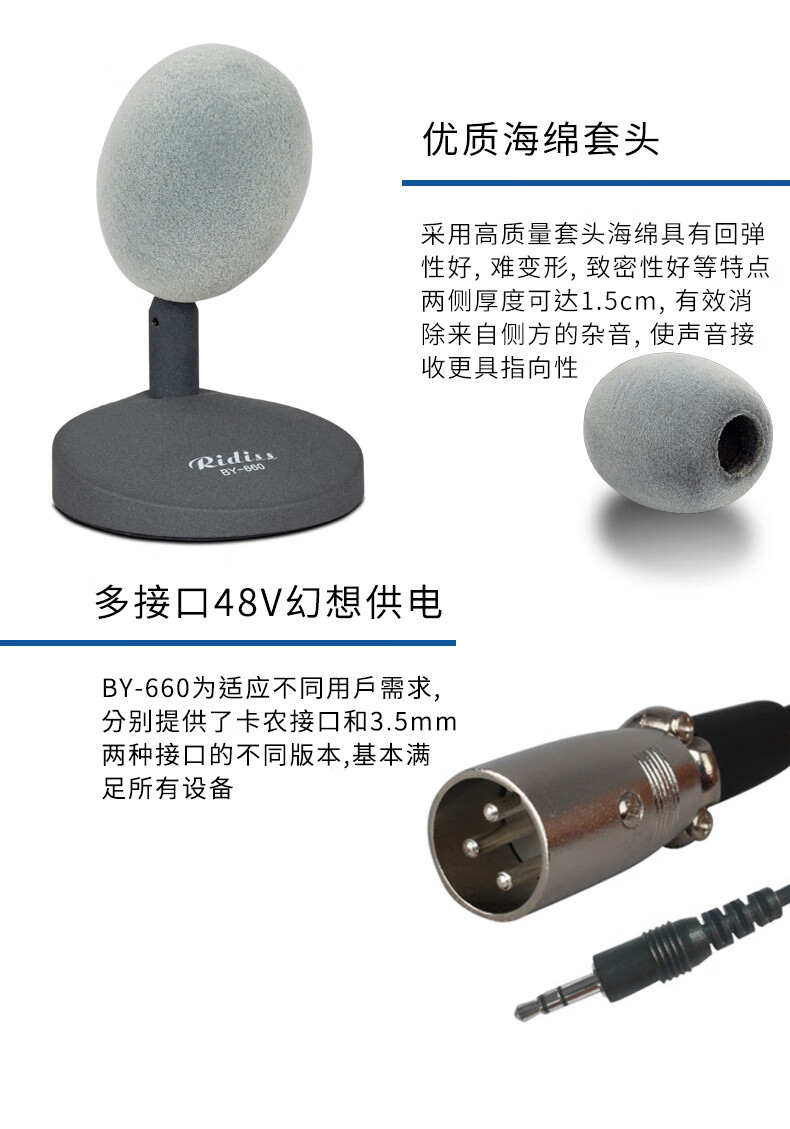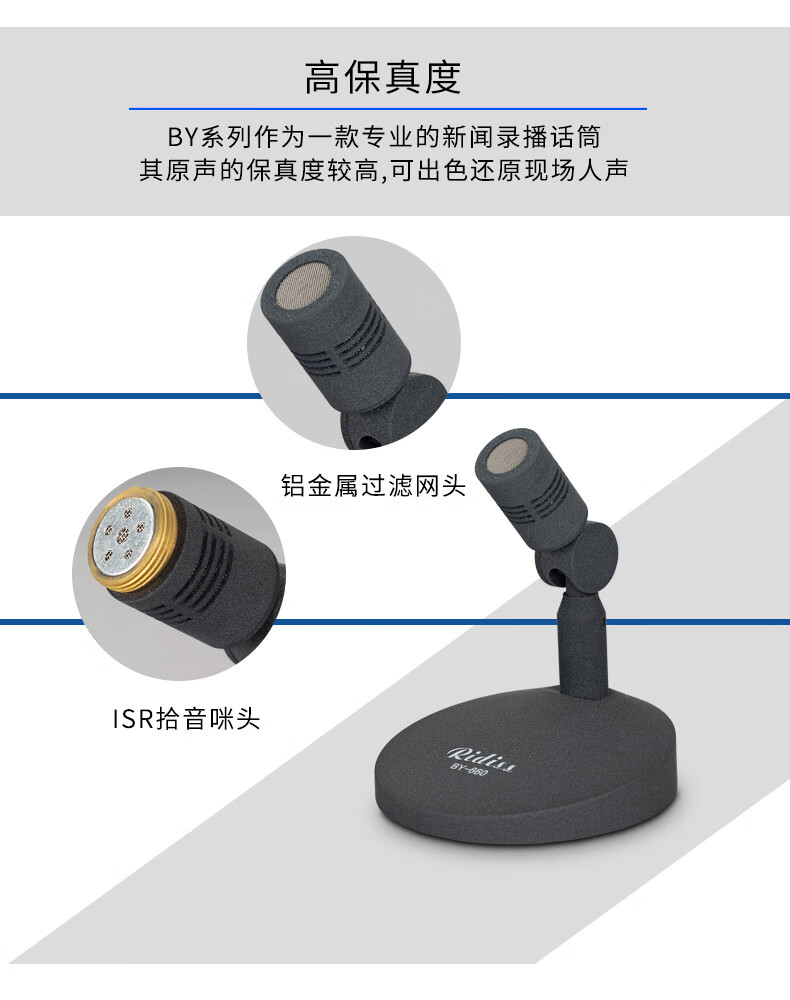 • 商品名称:Ridiss BY660新闻直播有线麦克风桌面录音鹅颈会议室系统主持访谈演讲采访话筒 BY660/支
