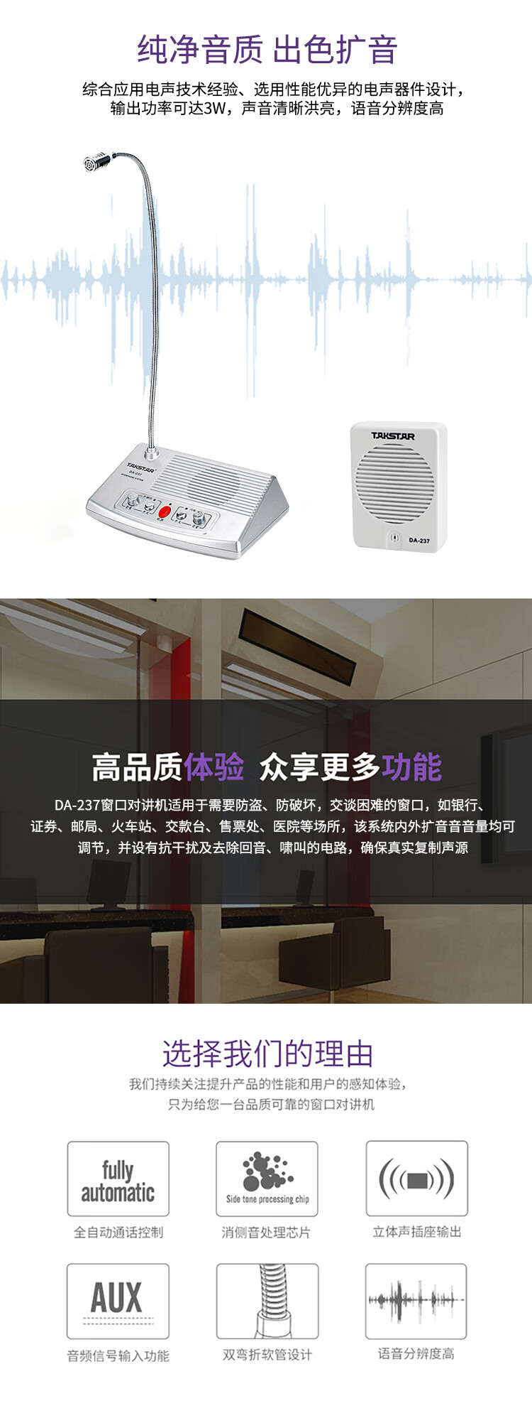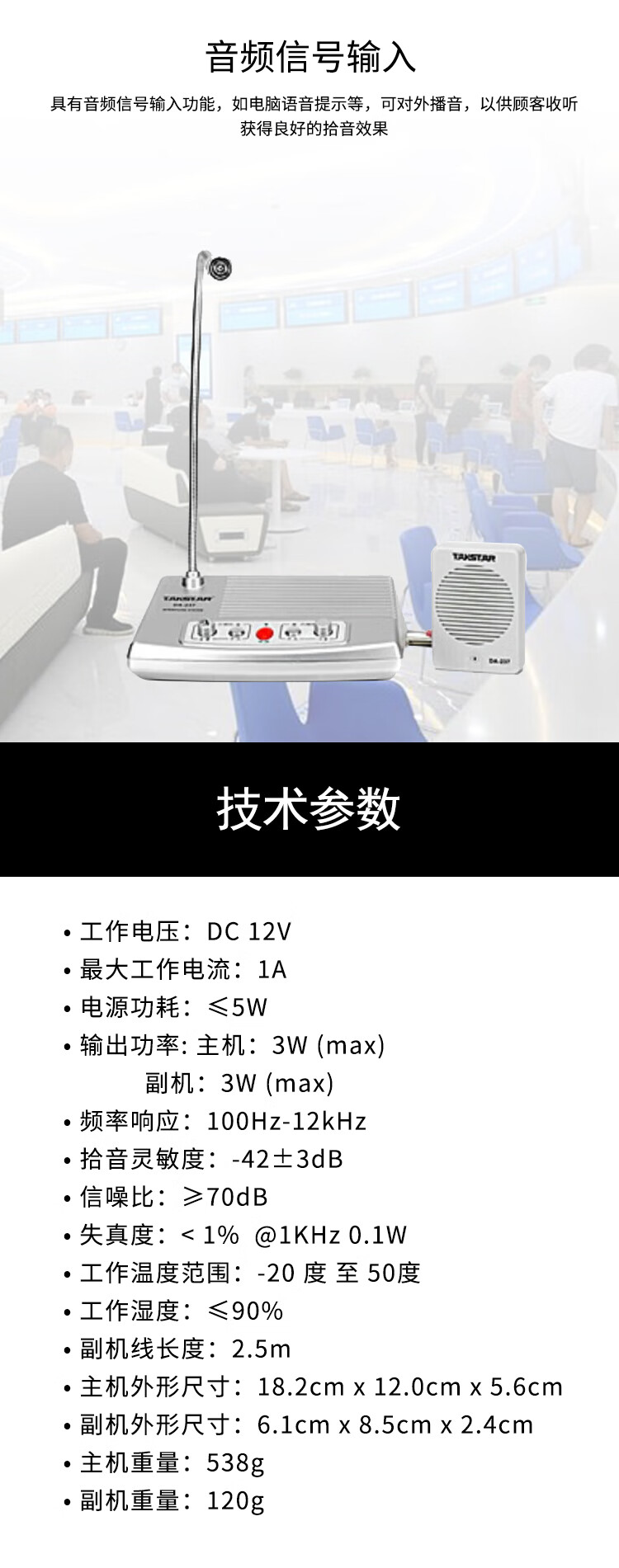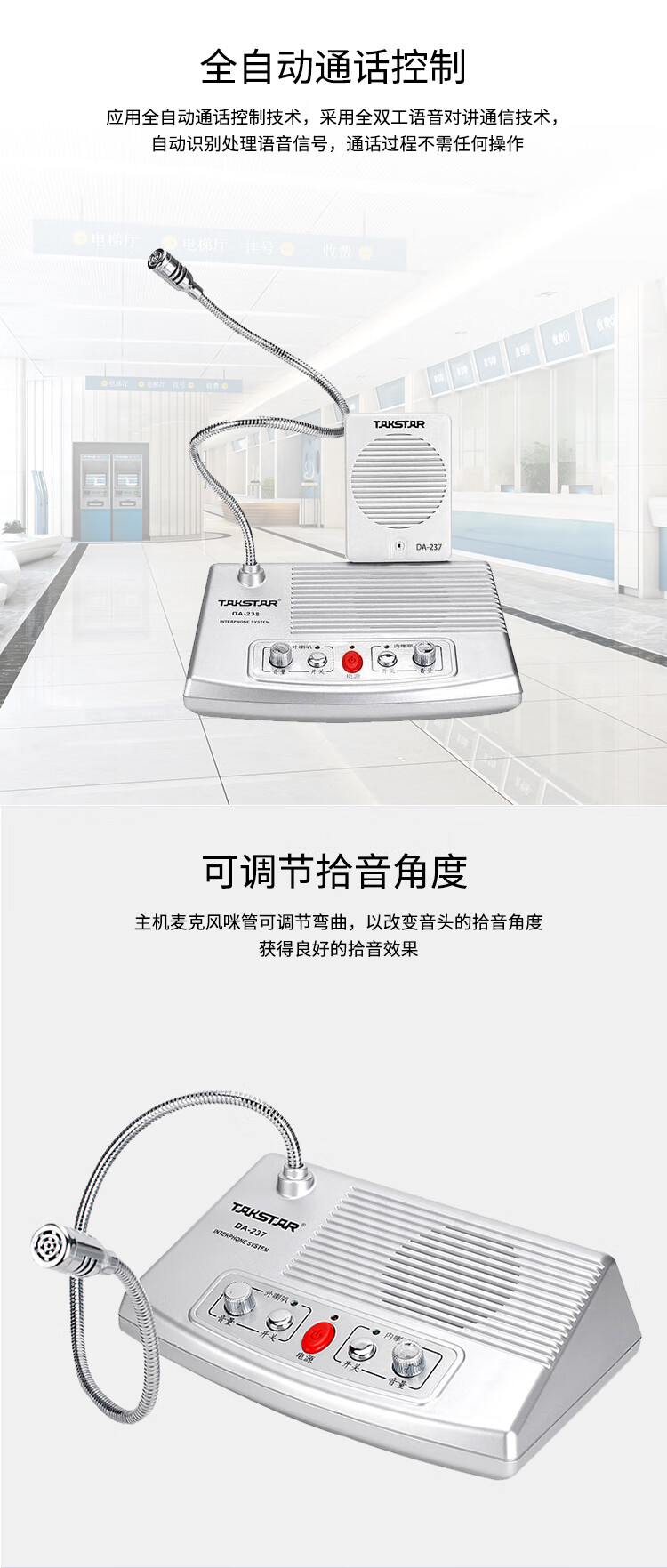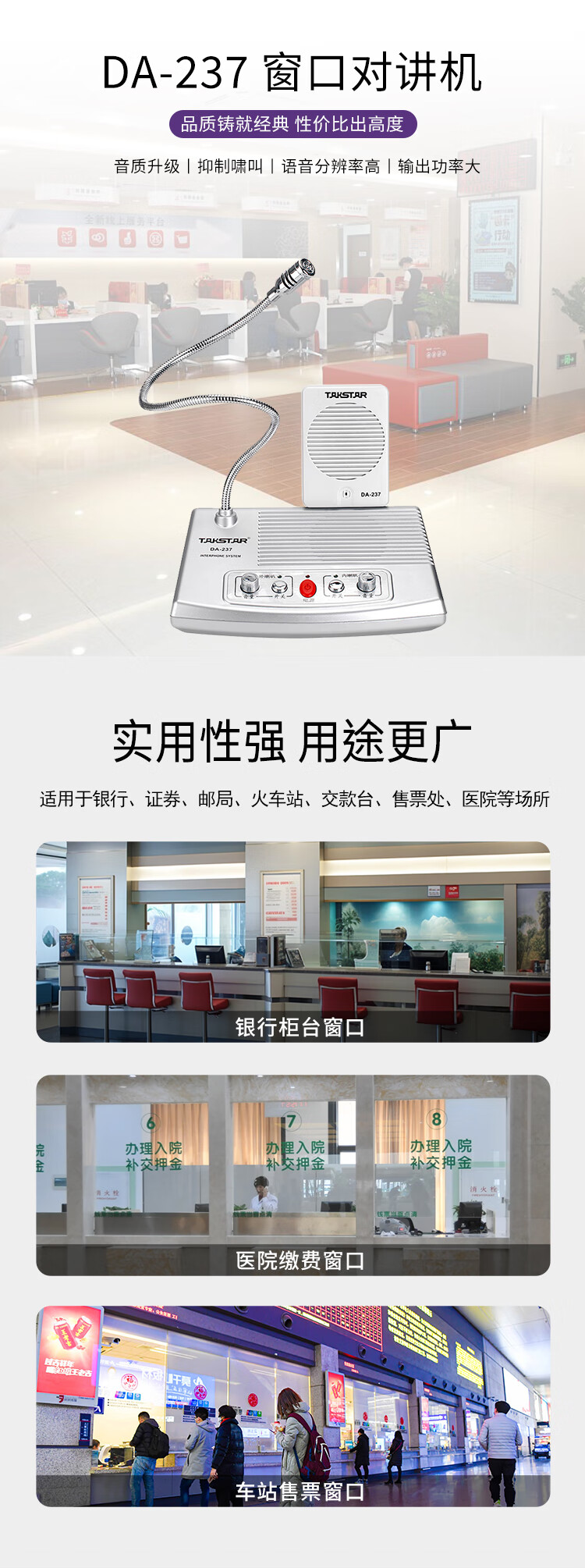 商品名称: 得胜(TAKSTAR)DA-237 窗口扩音器 有线双向扩音机双麦大音量扩音器银行邮局柜台医院 银色 台 DA-237/台