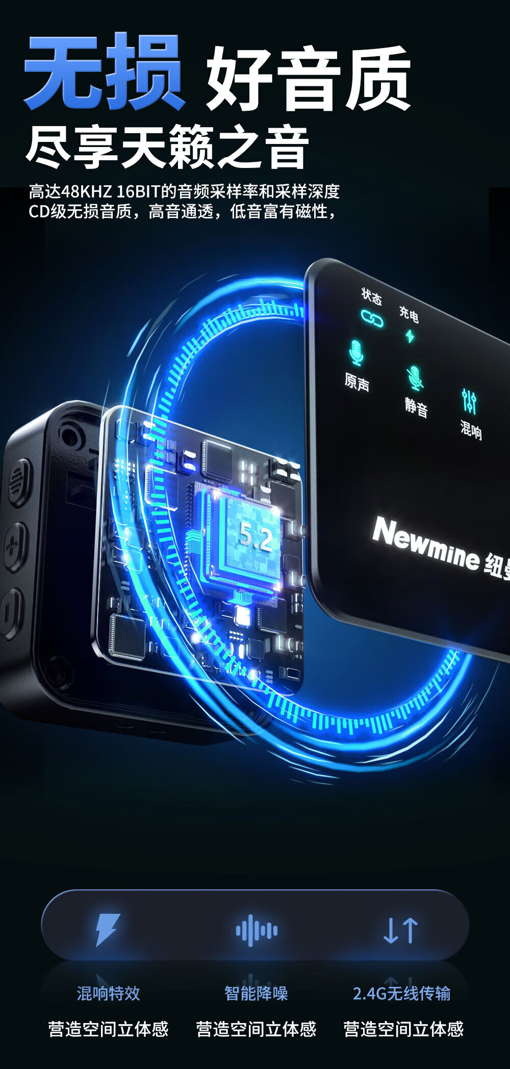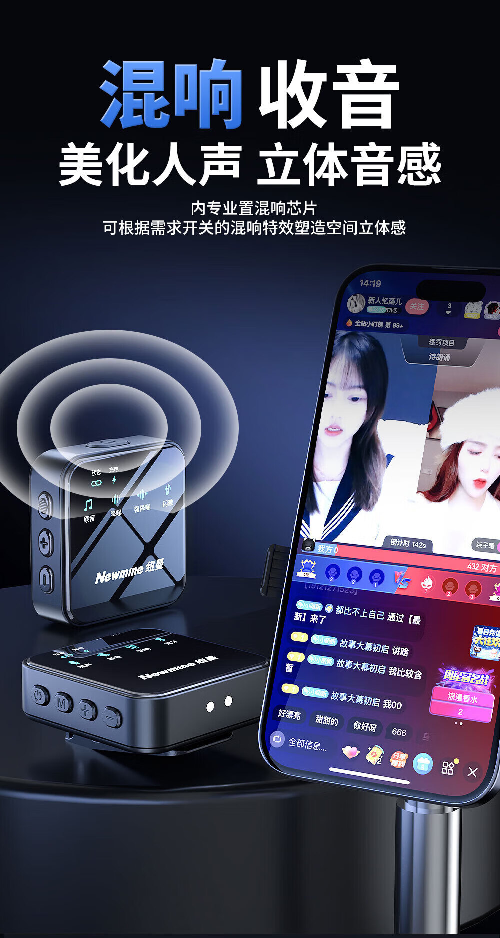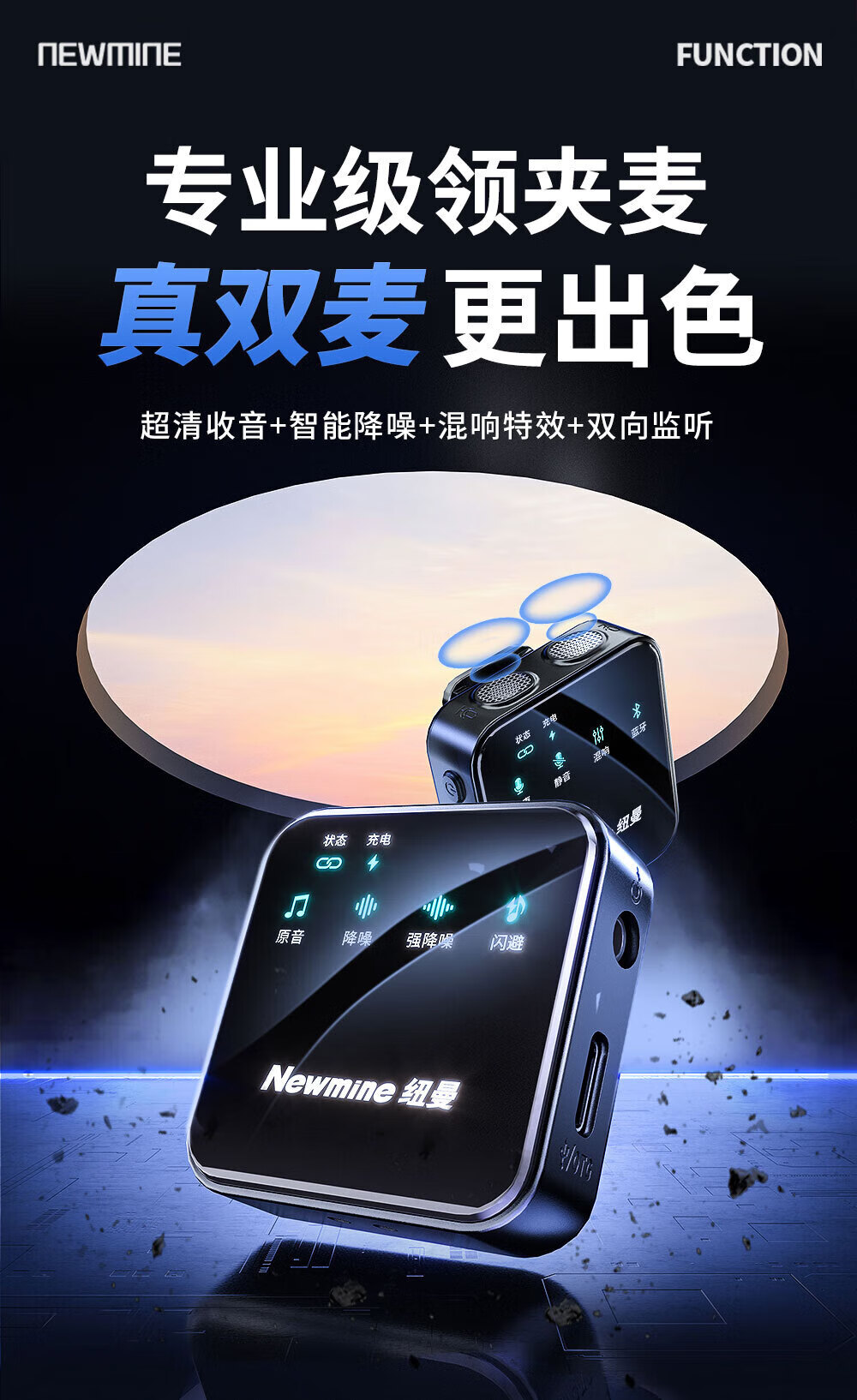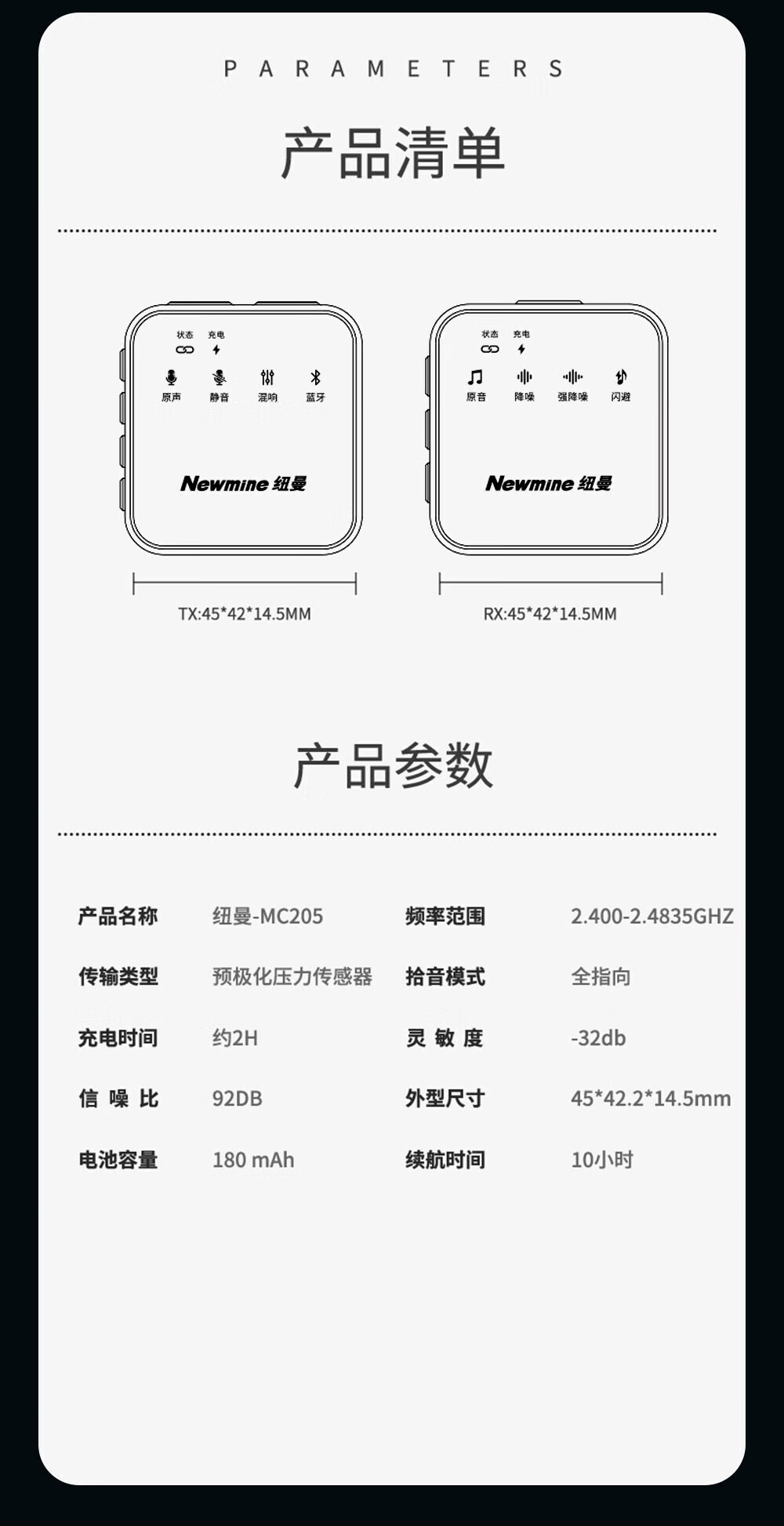 • 商品名称:纽曼(Newmine) MC206 无线领夹麦克风主播直播录音设备 一拖二 MC206/套