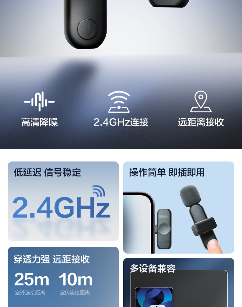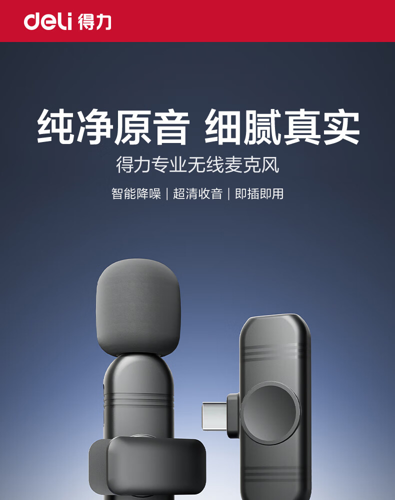 • 商品名称:得力(deli)无线领夹麦克风 直播短视频户外拍摄收音智能降噪手机电脑音箱收音麦一拖一通用型 MN510 MN510/个