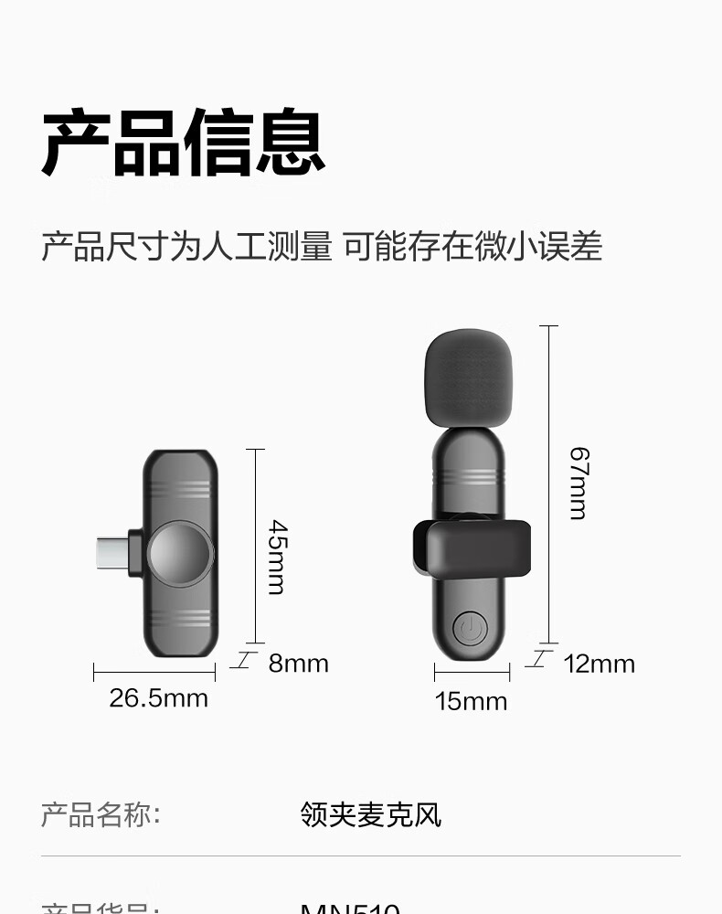 商品名称: 得力(deli)无线领夹麦克风 直播短视频户外拍摄收音智能降噪手机电脑音箱收音麦一拖一通用型 MN510 MN510/个