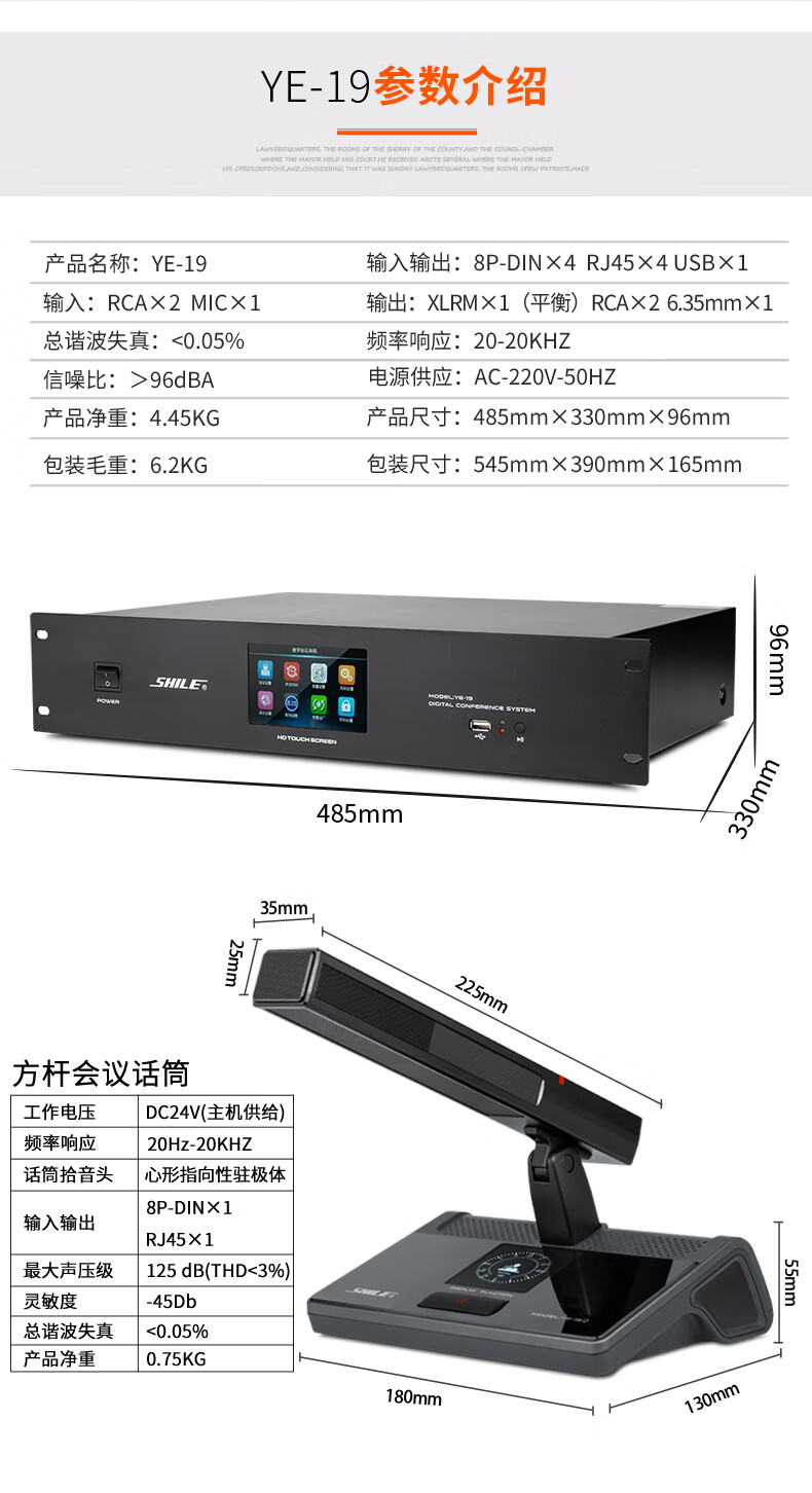 • 商品名称:狮乐(SHILE)专业有线手拉手麦克风 工程会议话筒8芯网线大型会议桌面鹅颈方杆话筒一拖八 YE-19 YE-19/套