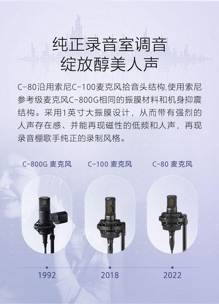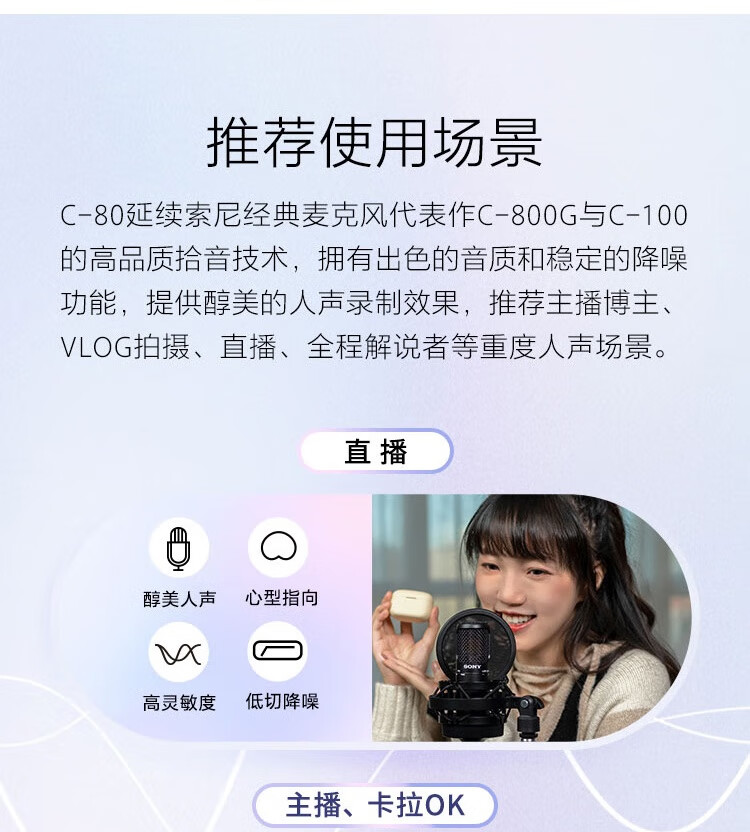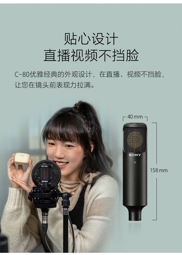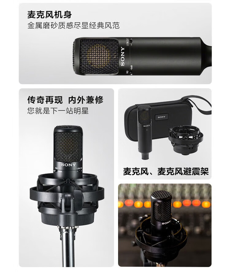 • 商品名称:索尼(SONY)C-80 电容式麦克风 专注录制醇美人声 主播vlog直播K歌练歌游戏话筒C80 C-80/个