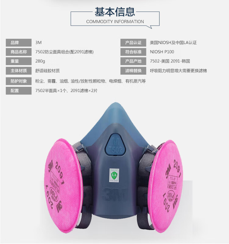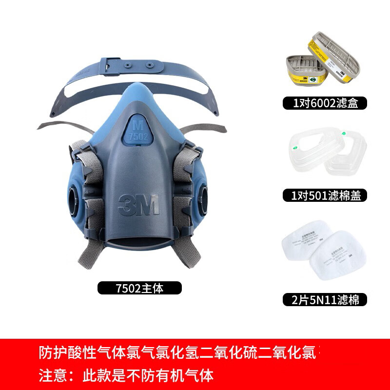• 商品名称:3M7502+6002CN+5N11+501防酸性气体等防毒套装CZ 7502系列套装/袋