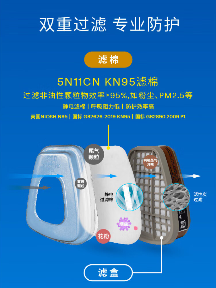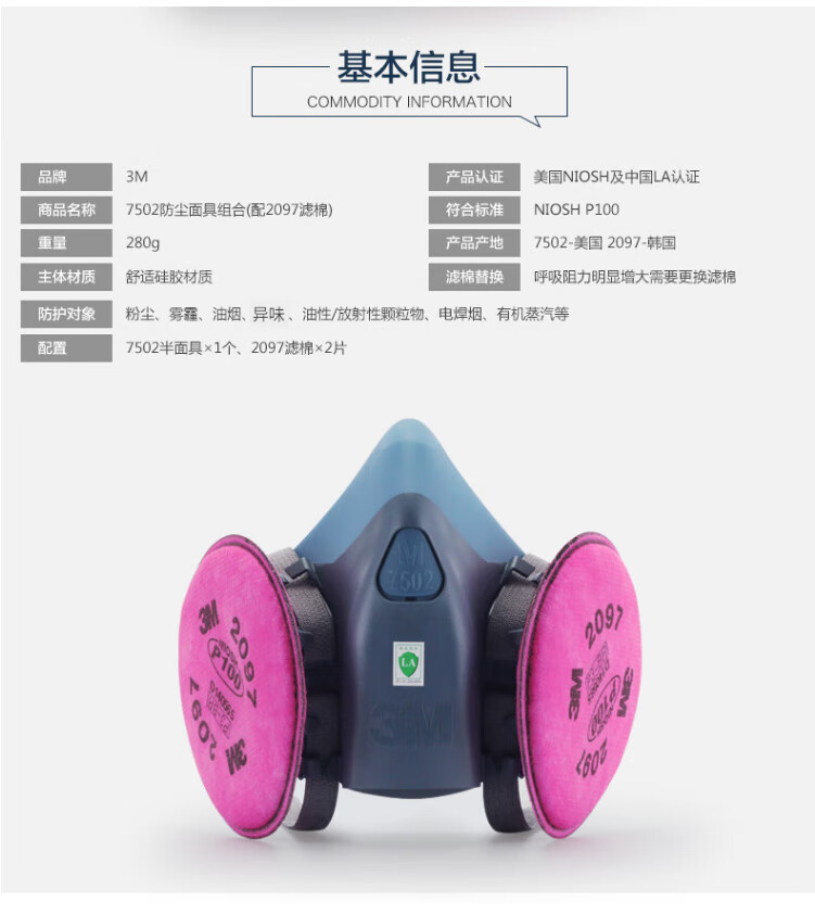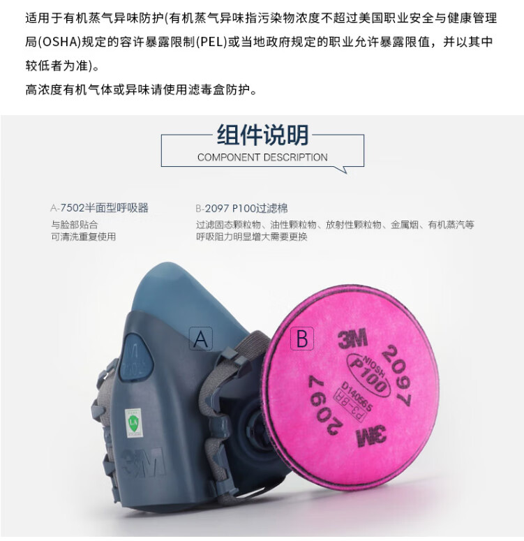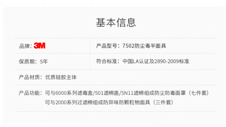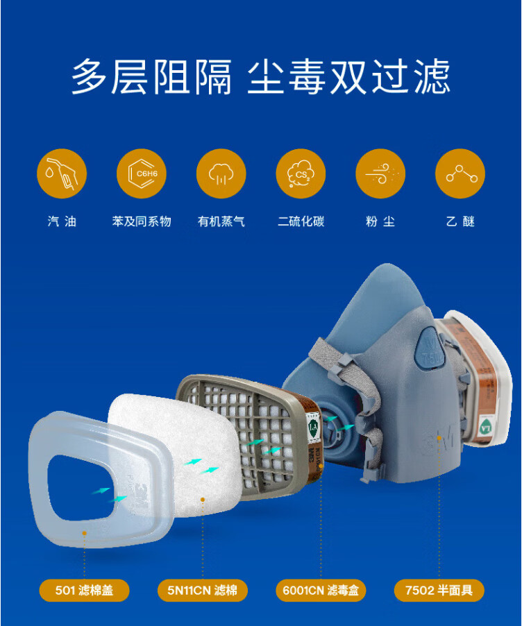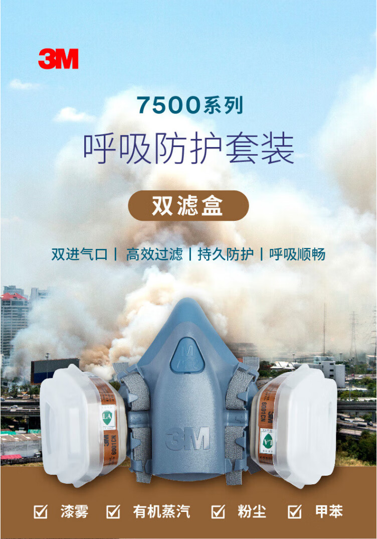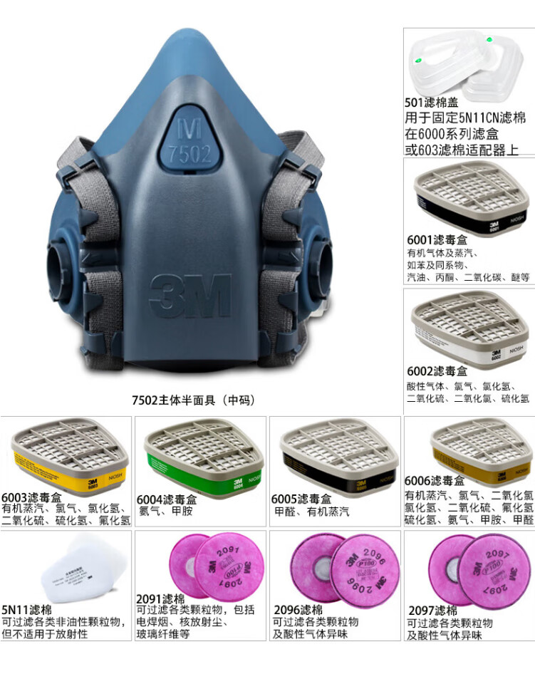 工业品  > 个人防护  > 呼吸防护  >  3M  >  3M7502+6002CN+5N11+501防酸性气体等防毒套装CZ 7502系列套装/袋