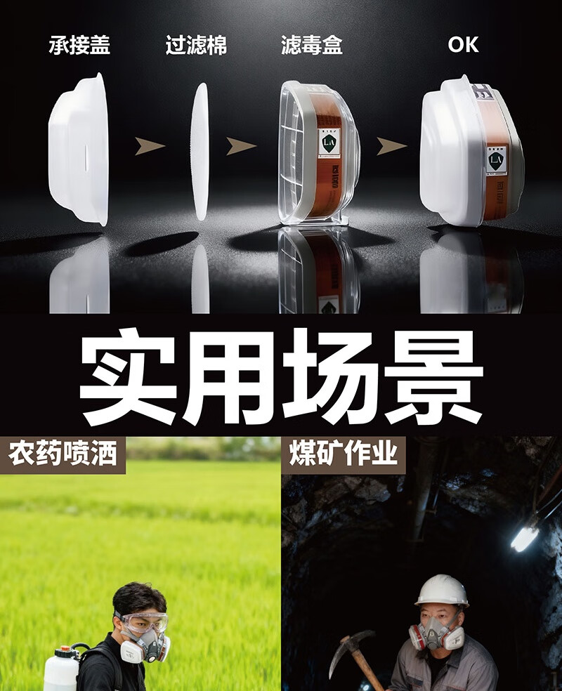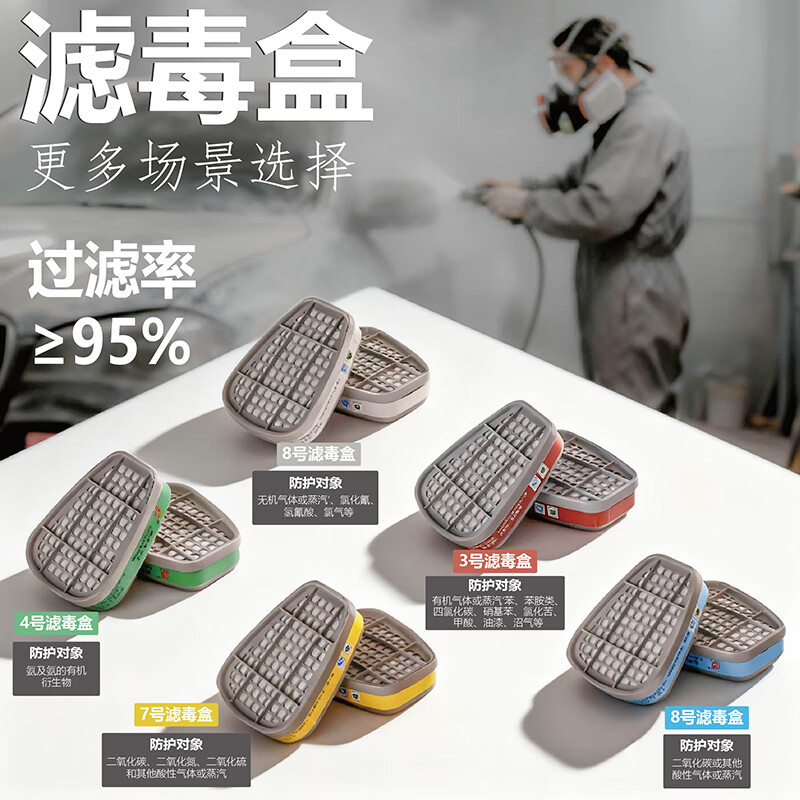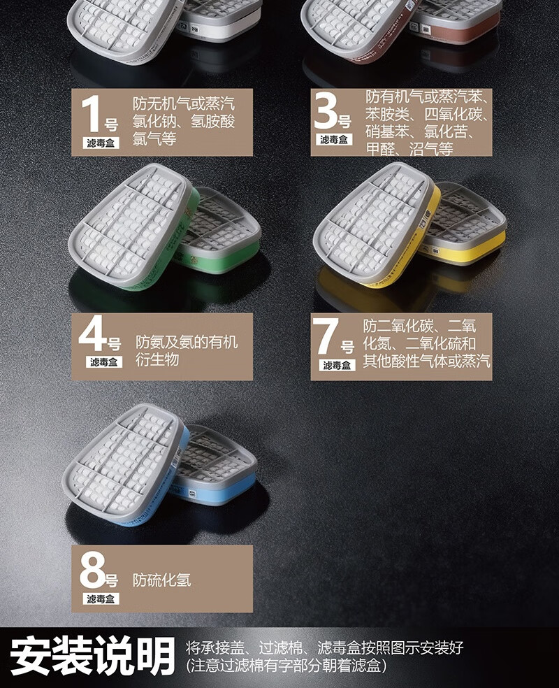 包装清单: 410半面罩+3号滤盒七件套*1