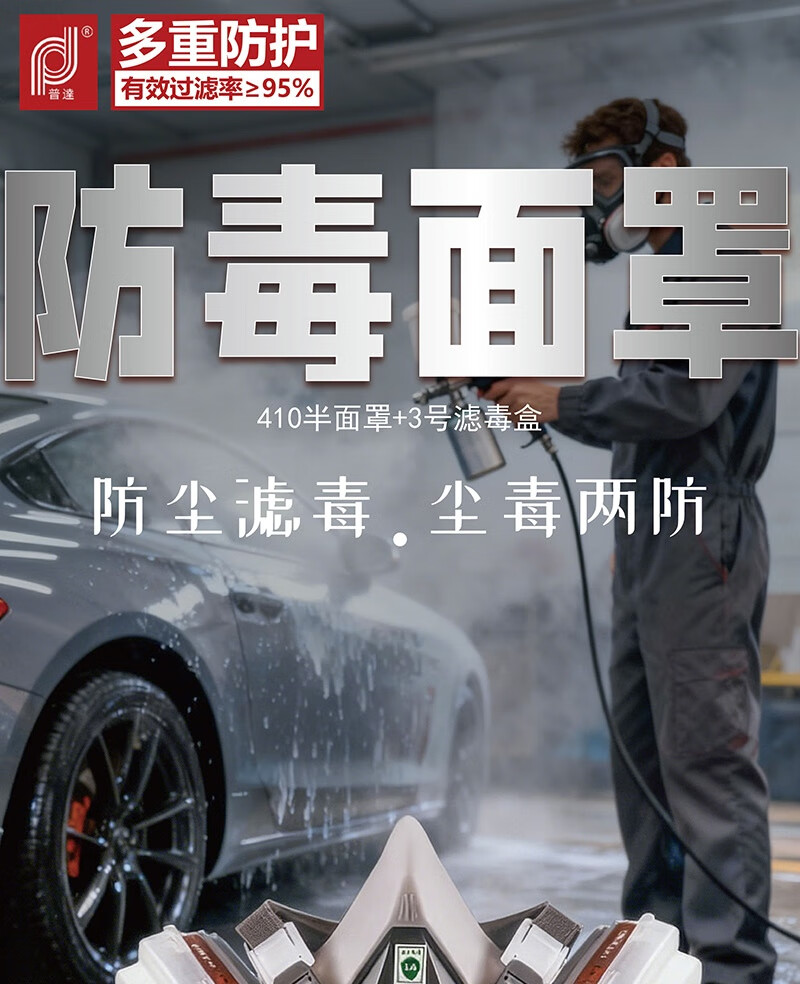 商品名称: 普达防毒面具全面罩含3号滤毒盒套装 防尘/醛/苯/醚等有机气体喷漆印刷防毒面罩 410半面罩+3号滤盒七件套/套