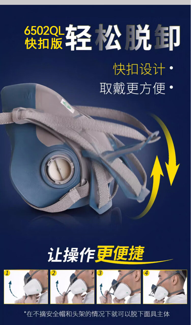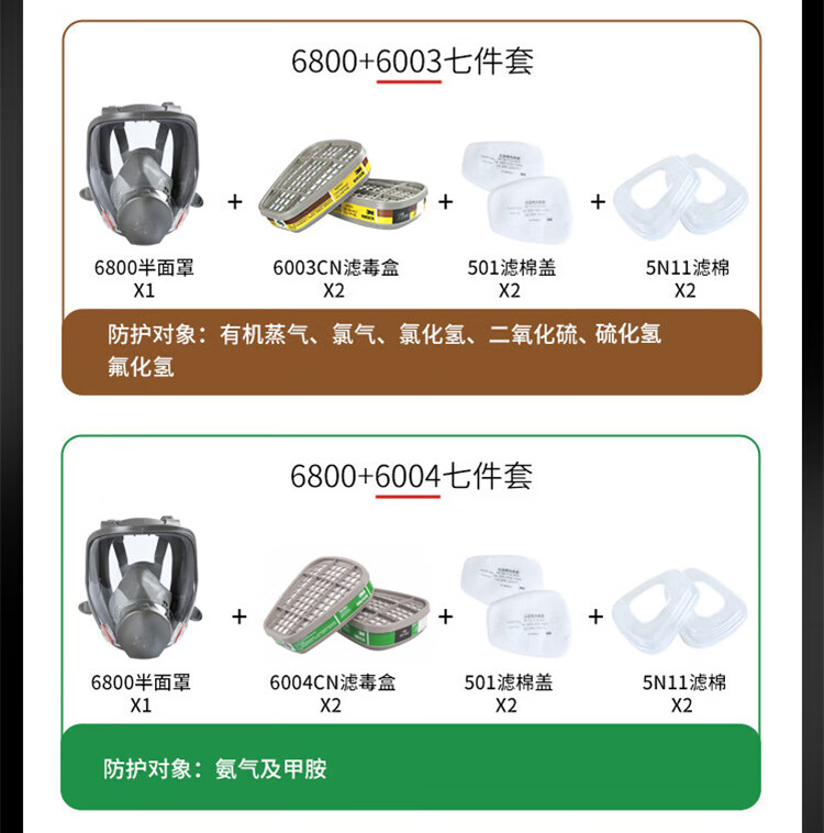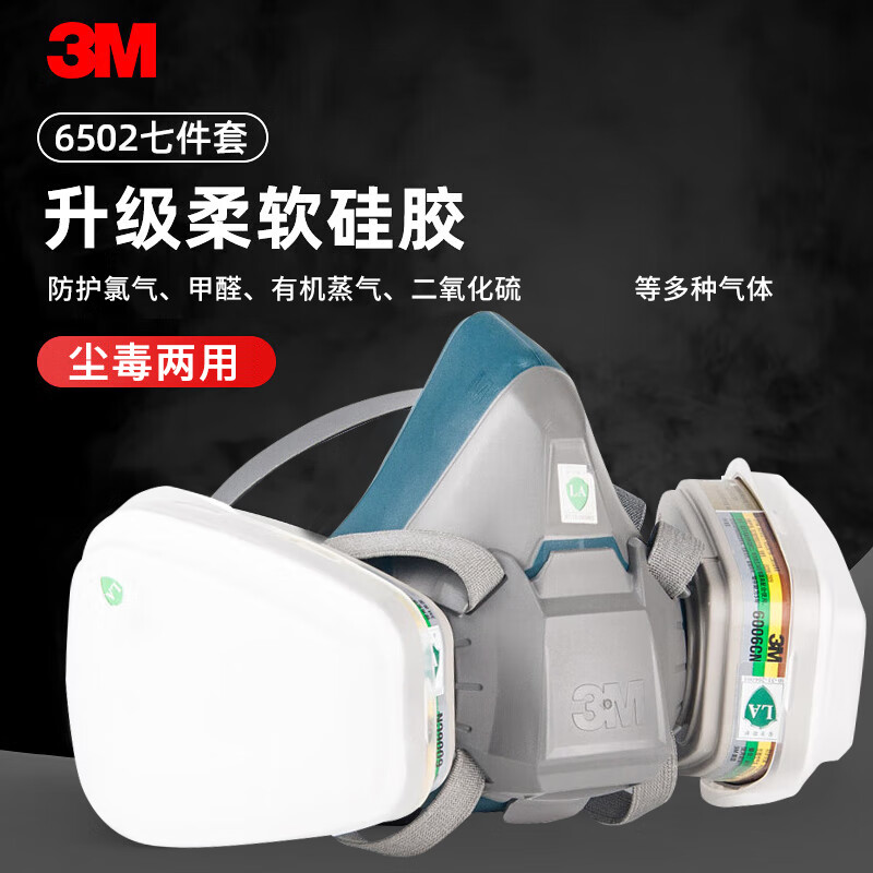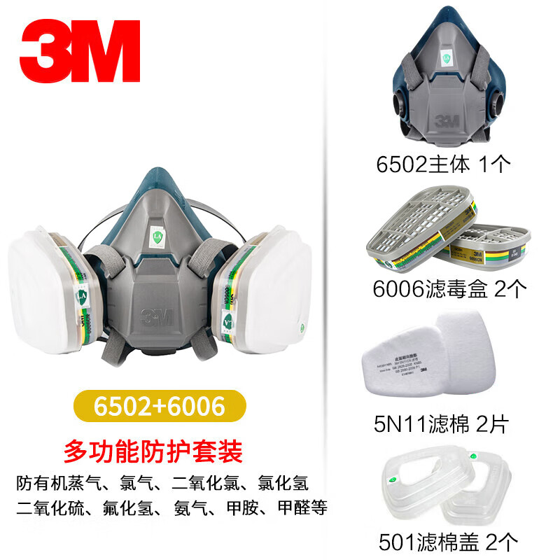 工业品  > 个人防护  > 呼吸防护  >  3M  >  3M6502+6006硅胶防毒面具罩实验室防有毒气体喷漆专用化工粉尘呼吸防护CZ 6800面具1个+6001CN滤毒盒2个+501滤棉盖2个+5N11CN滤棉2片/套
