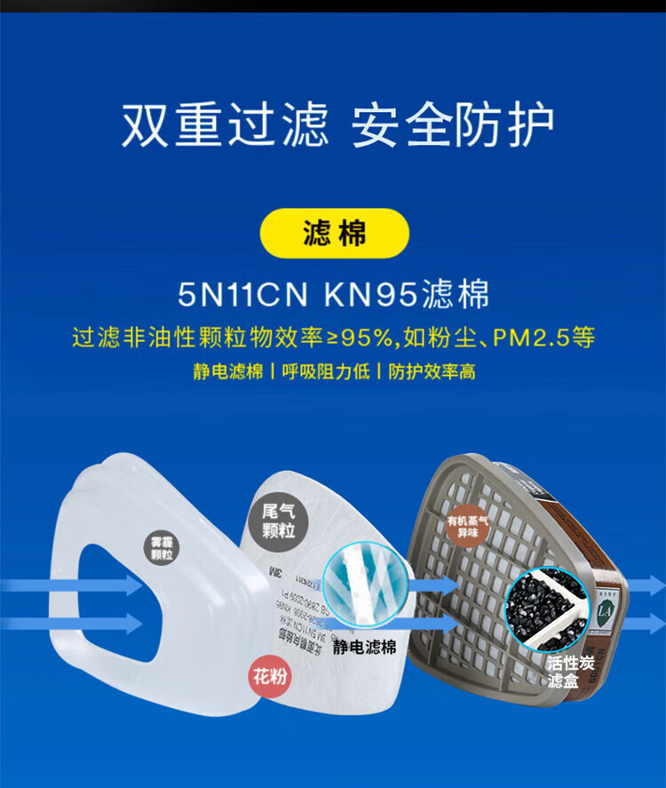 • 商品名称:3M6502+6006硅胶防毒面具罩实验室防有毒气体喷漆专用化工粉尘呼吸防护CZ 6800面具1个+6001CN滤毒盒2个+501滤棉盖2个+5N11CN滤棉2片/套
