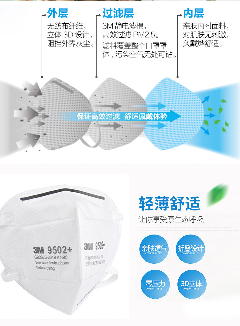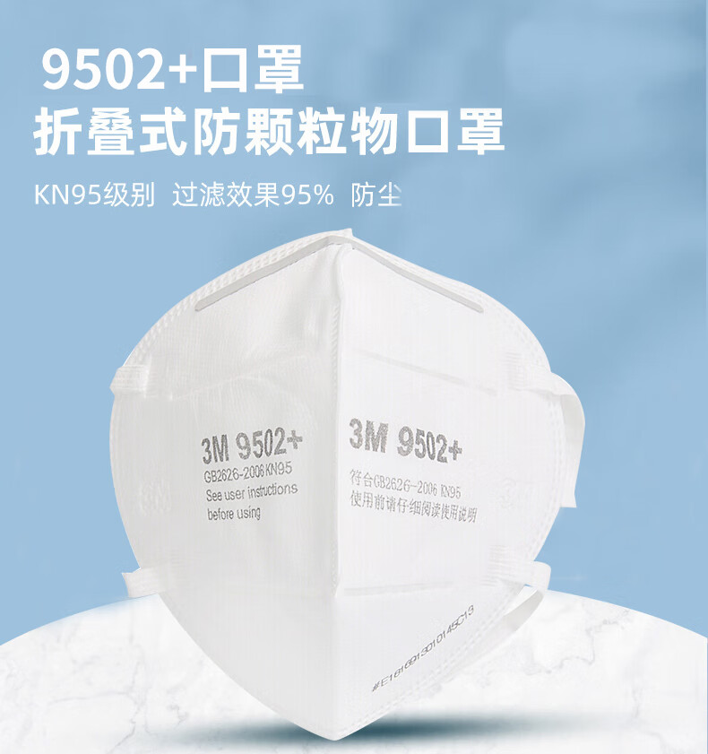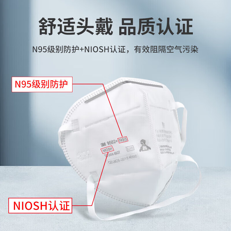 • 商品名称:3M 9502+ 头戴式防尘口罩 1个 SL 9502+/个