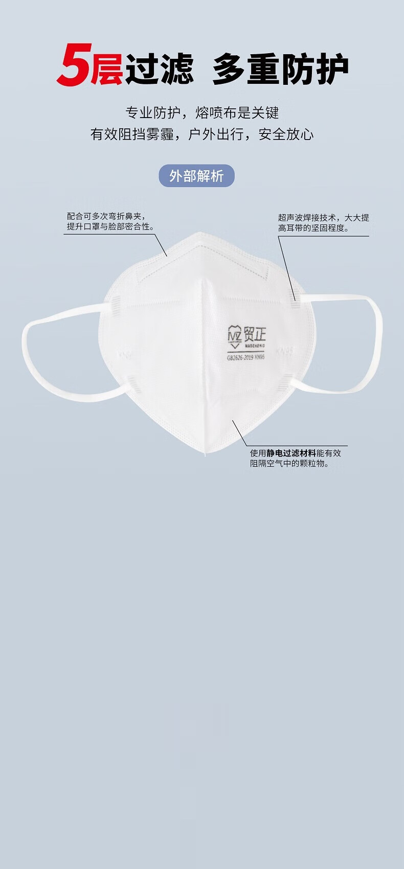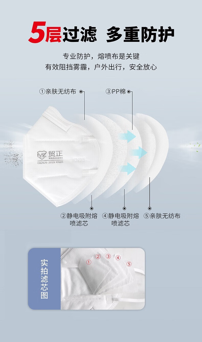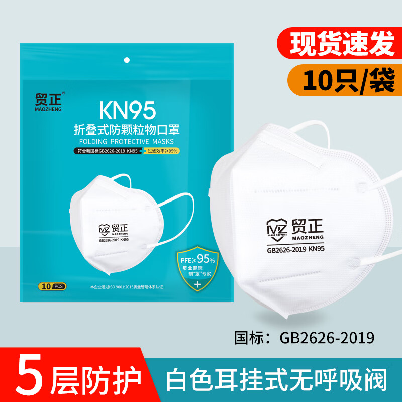 • 商品名称:贸正 一次性口罩 KN95耳戴无呼吸阀口罩防尘防飞沫粉尘防雾霾透气口罩8600白色10个/包 8600/包