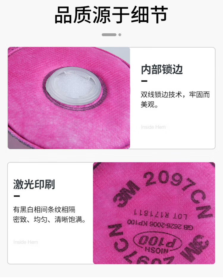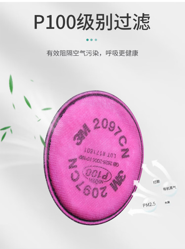 工业品  > 个人防护  > 呼吸防护  >  3M  >  3M2097CN P100高效过滤棉防颗粒物有机蒸气喷漆 配面具用 2片/包CZ 滤棉系列/盒