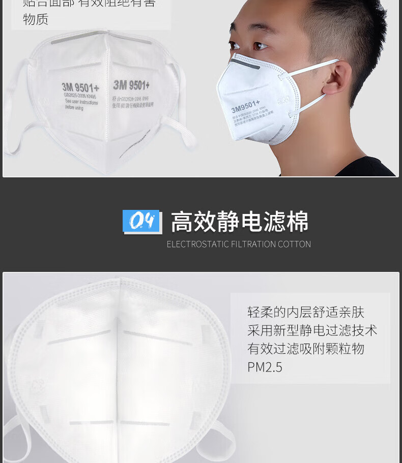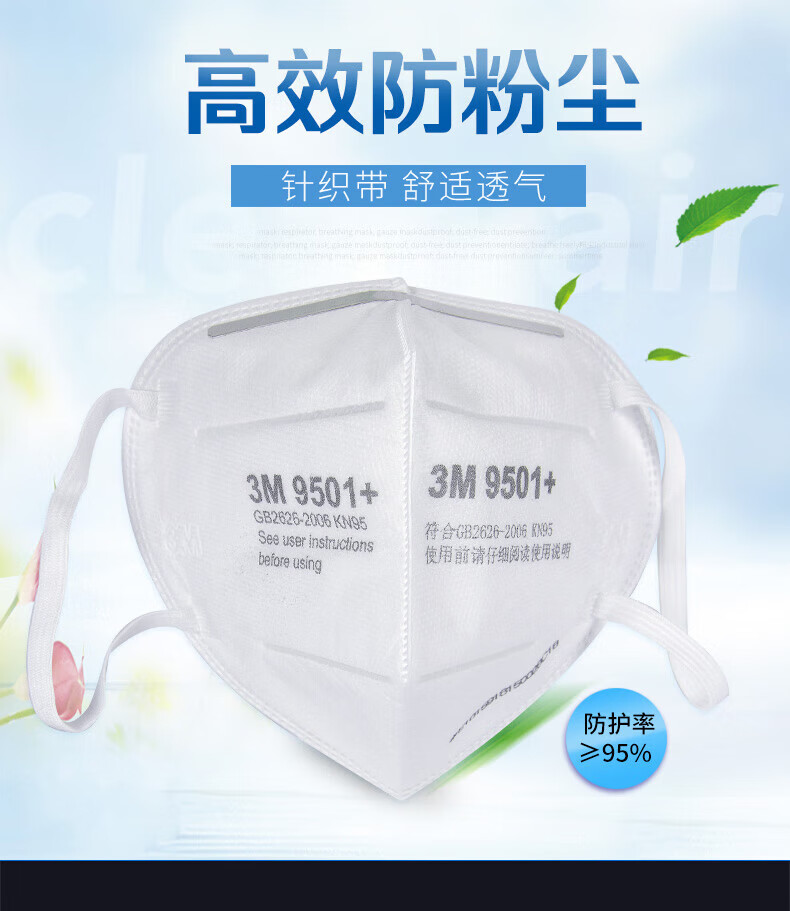 工业品  > 个人防护  > 呼吸防护  >  3M  >  3M 9501+ 口罩 KN95 环保装 1个 9501+/个