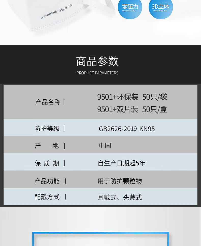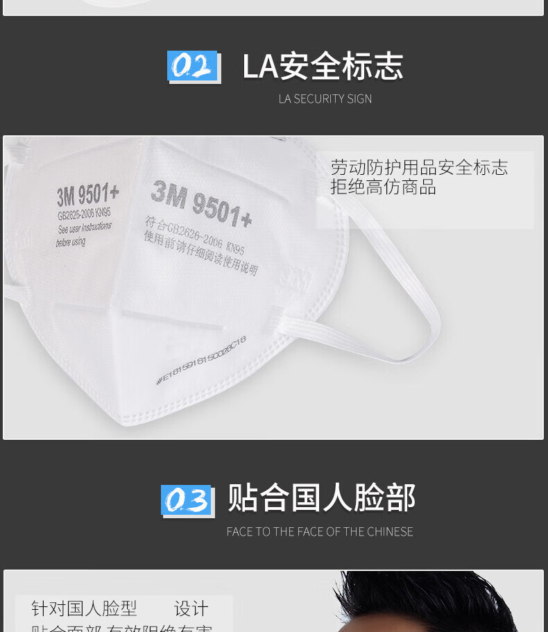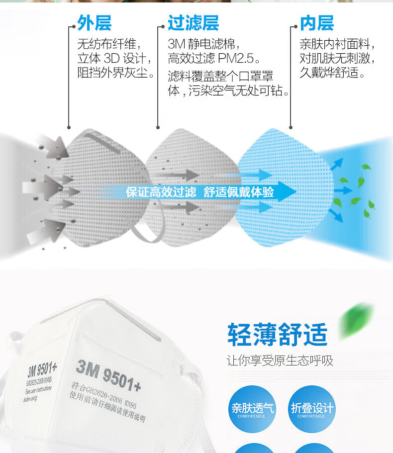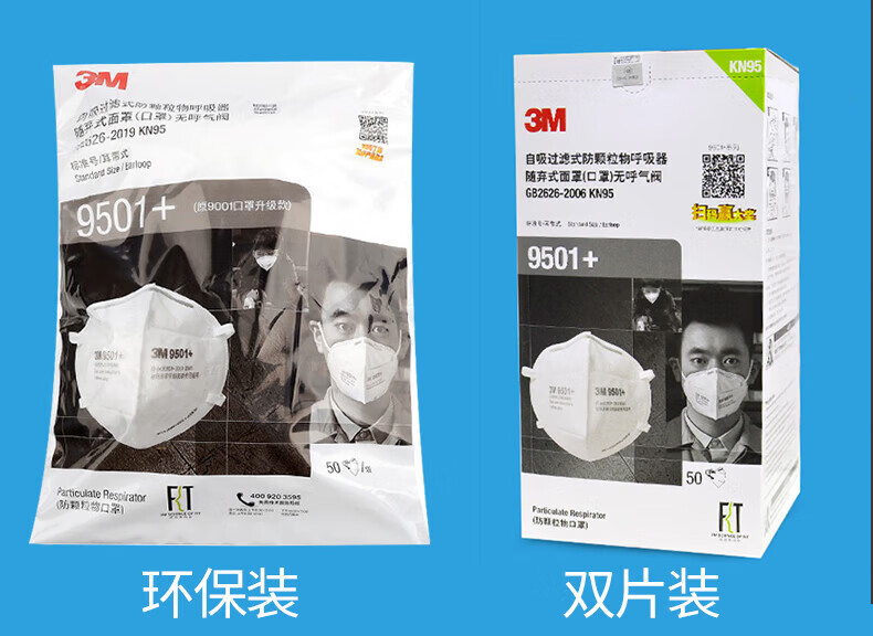 • 商品名称:3M 9501+ 口罩 KN95 环保装 1个 9501+/个