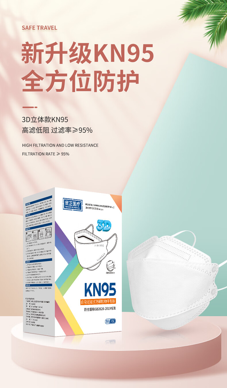 • 商品名称:贸正 一次性口罩 KN95柳叶型3D立体口罩鱼嘴型防尘防唾液防雾霾口罩 独立包装 白色 50只装 KN95口罩/盒