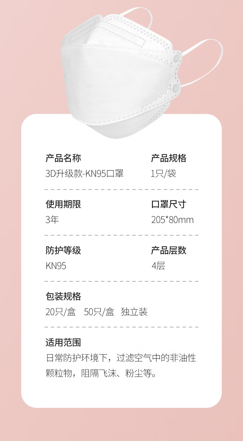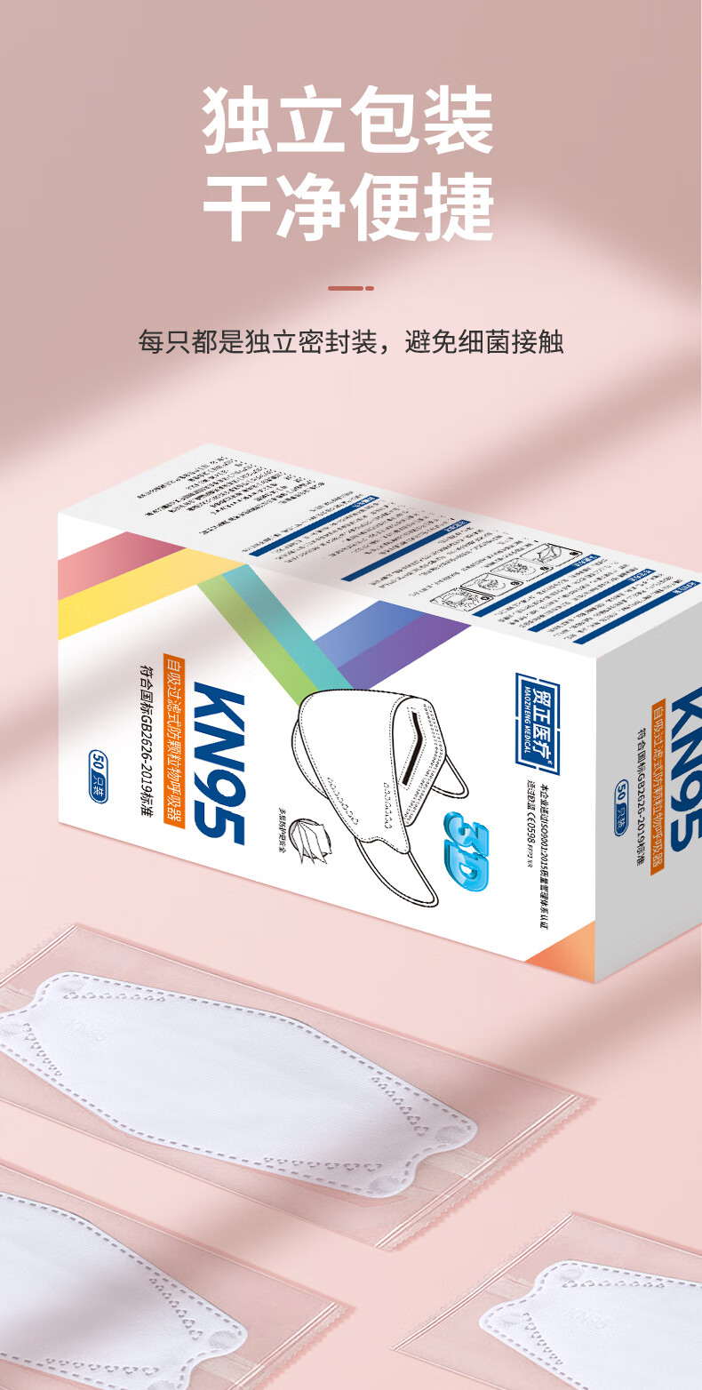 商品名称: 贸正 一次性口罩 KN95柳叶型3D立体口罩鱼嘴型防尘防唾液防雾霾口罩 独立包装 白色 50只装 KN95口罩/盒