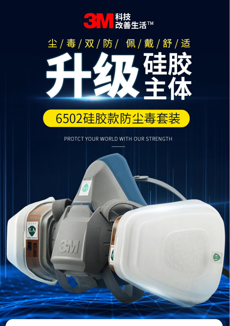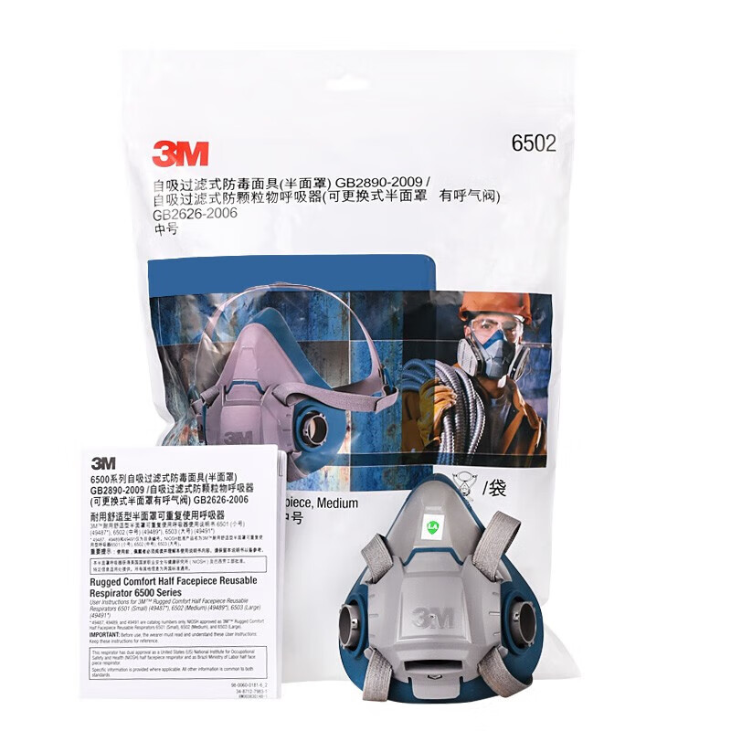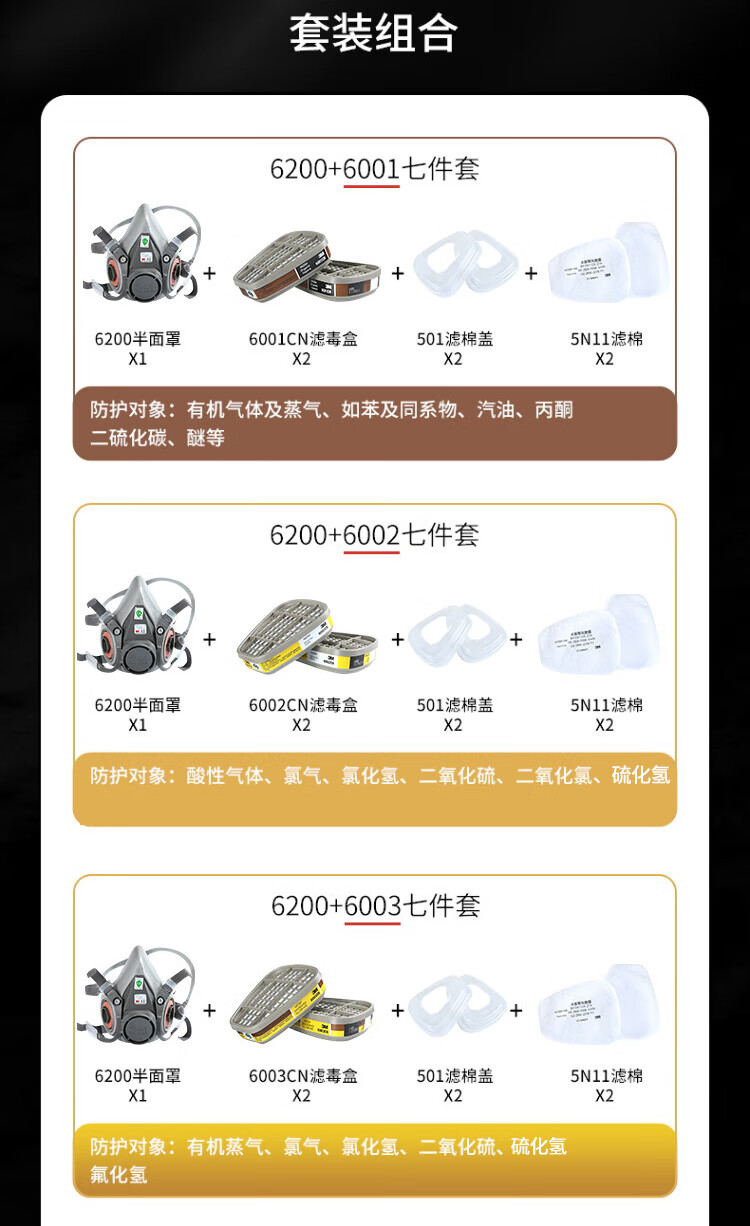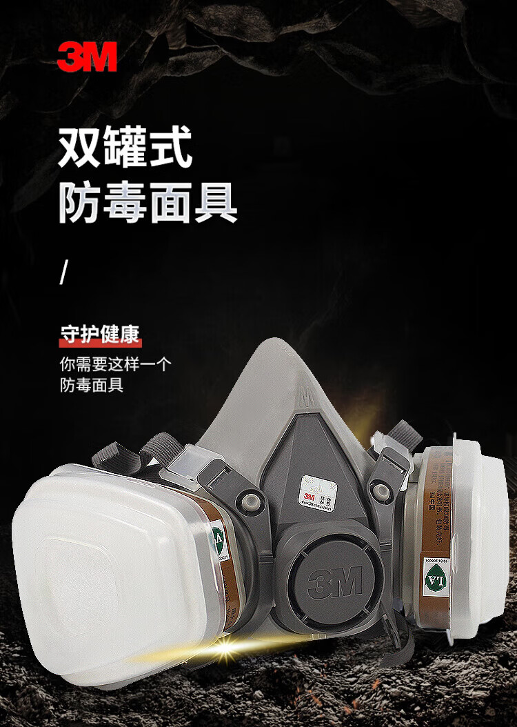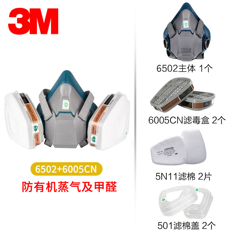 工业品  > 个人防护  > 呼吸防护  >  3M  >  3M6502+6005硅胶防毒面具罩实验室防有毒气体喷漆专用化工粉尘呼吸防护CZ 6800面具1个+6001CN滤毒盒2个+501滤棉盖2个+5N11CN滤棉2片/套