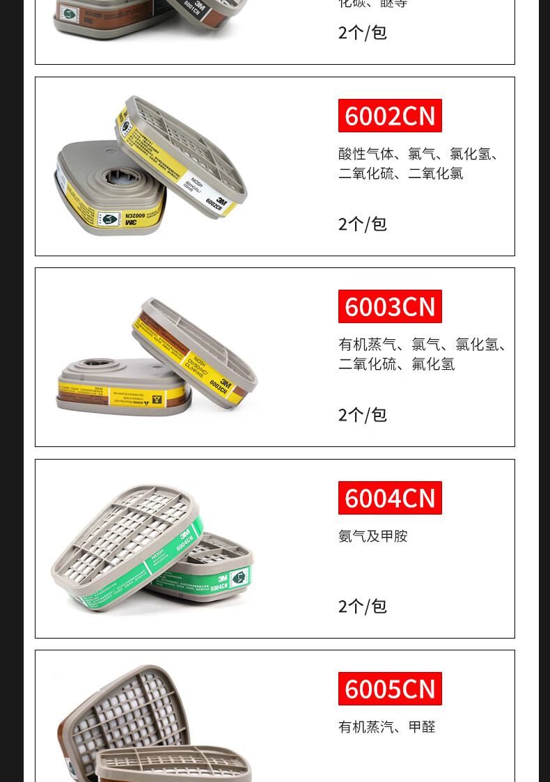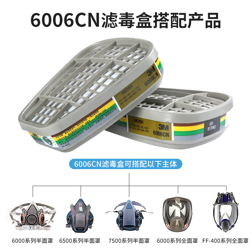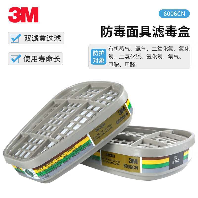 工业品  > 个人防护  > 呼吸防护  >  3M  >  3M6006CN滤毒盒 防毒面具配件有机气体化工喷漆专用 2个/包 6002CN/包