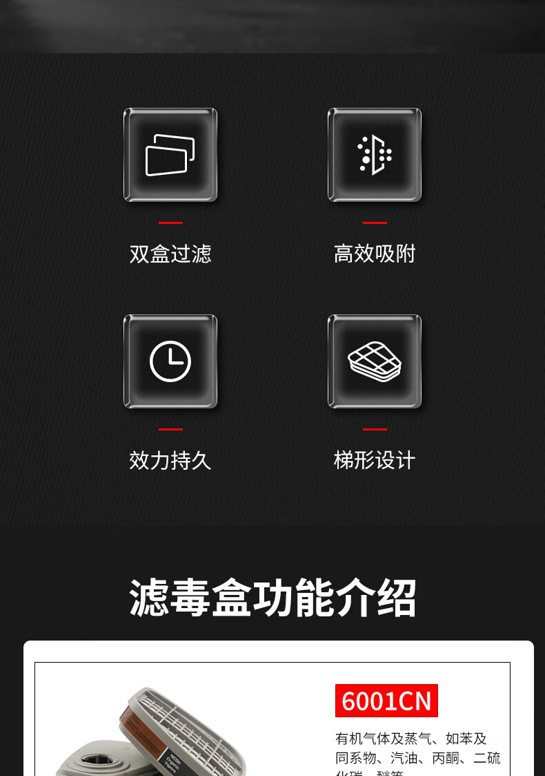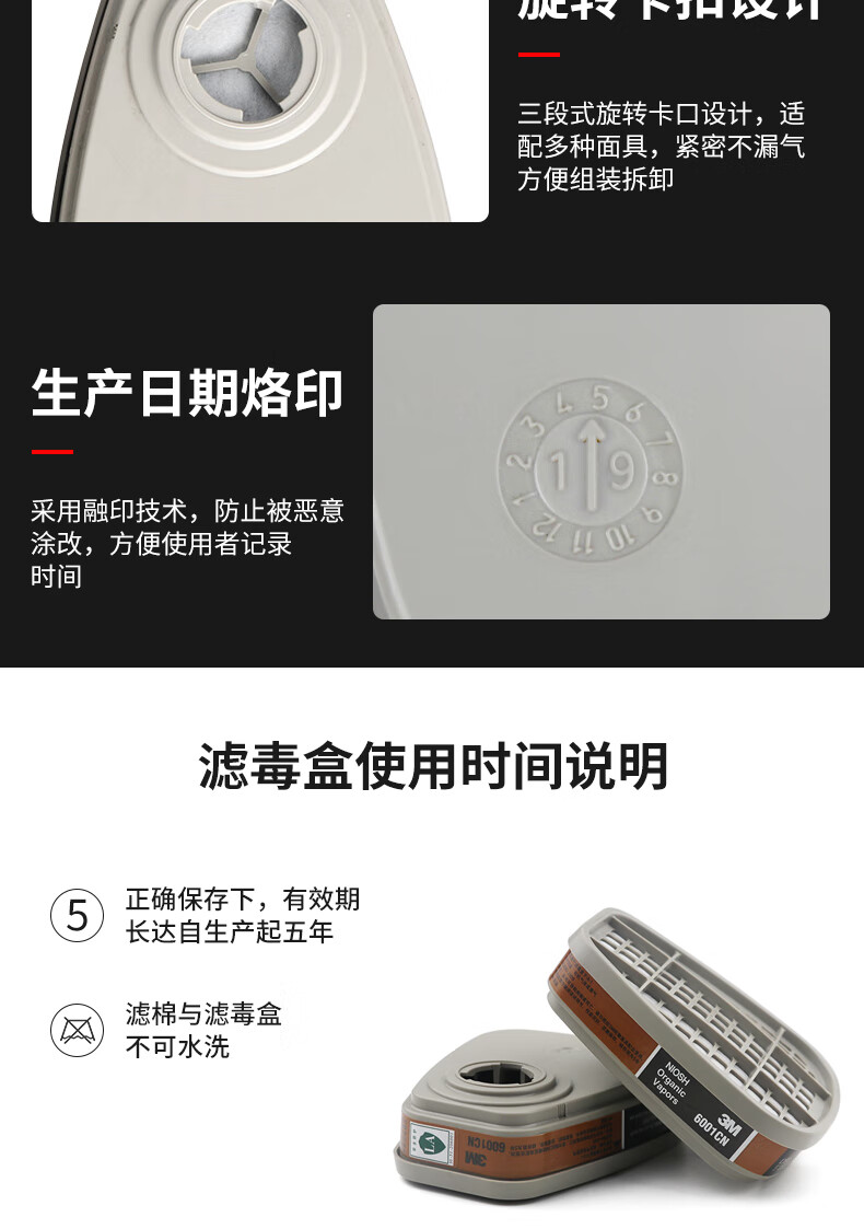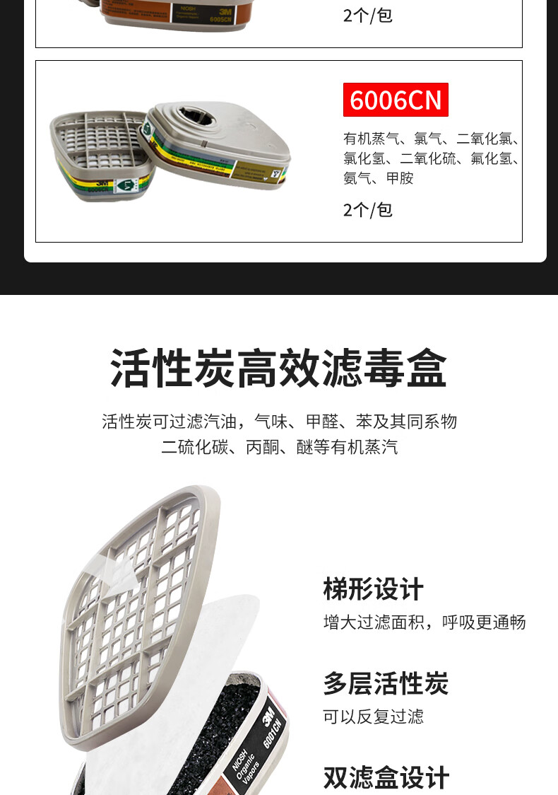 • 商品名称:3M6006CN滤毒盒 防毒面具配件有机气体化工喷漆专用 2个/包 6002CN/包