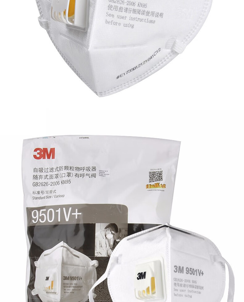 工业品  > 个人防护  > 呼吸防护  >  3M  >  3M 9501V+ 环保装防尘口罩 1个 SL 9501V+/个