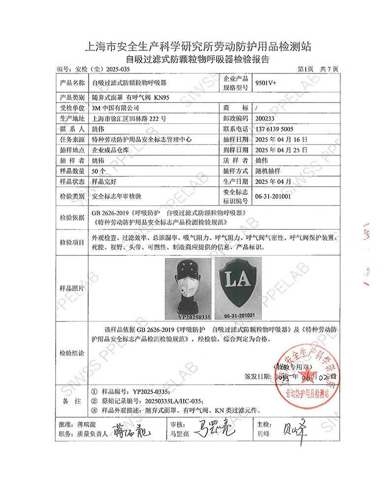商品名称: 3M 9501V+ 环保装防尘口罩 1个 SL 9501V+/个