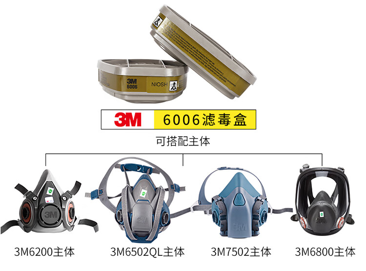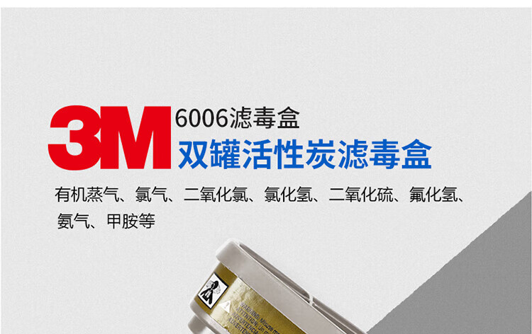 商品名称: 3M 多功能滤盒 6006CN 防护有机蒸气氯化氢氟化氢 1对 6006CN 滤毒盒/包