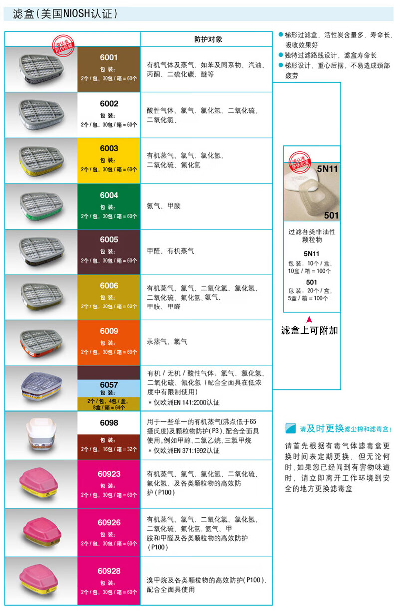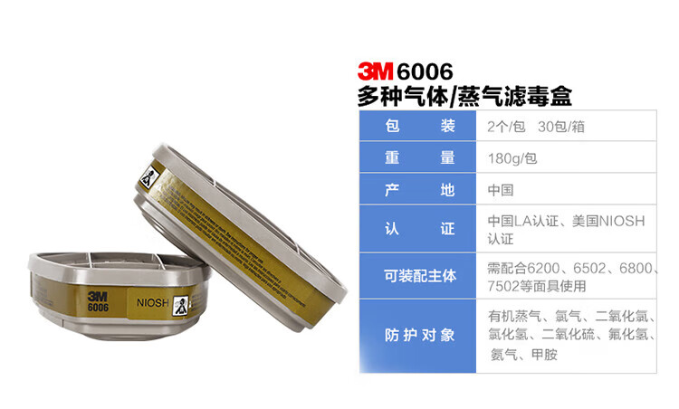 • 商品名称:3M 多功能滤盒 6006CN 防护有机蒸气氯化氢氟化氢 1对 6006CN 滤毒盒/包