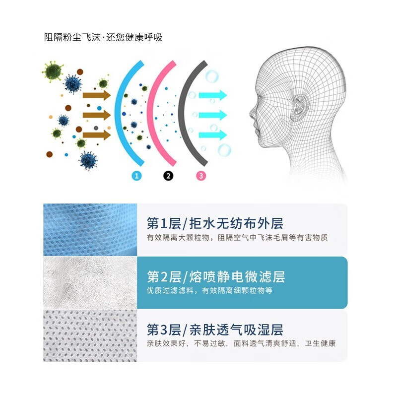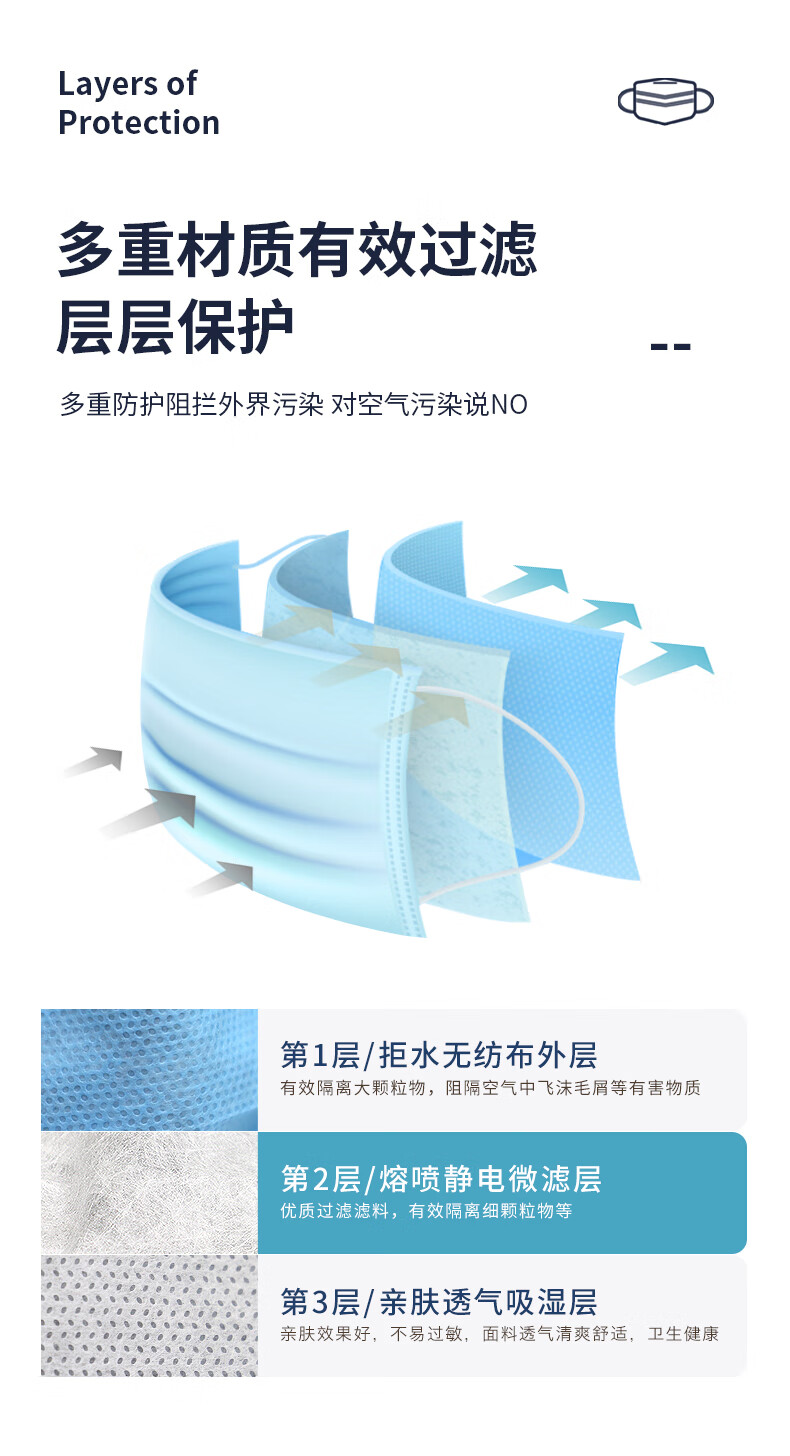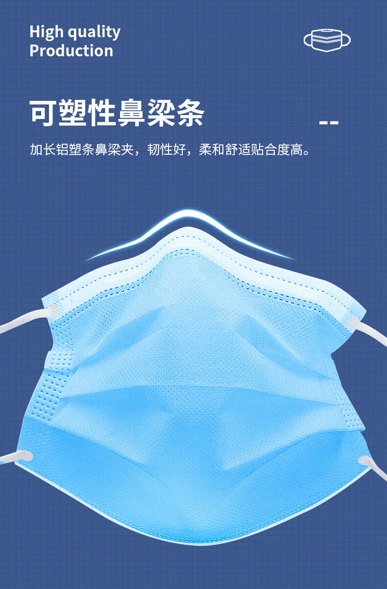 • 商品名称:贸正 一次性口罩 50只/盒蓝色带熔喷布三层成人男女通勤MZ-01 MZ-01/盒