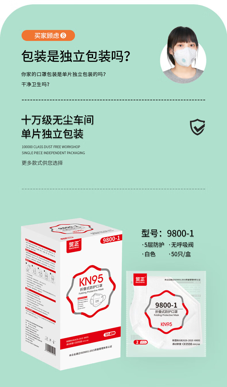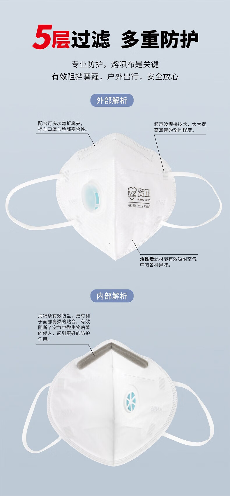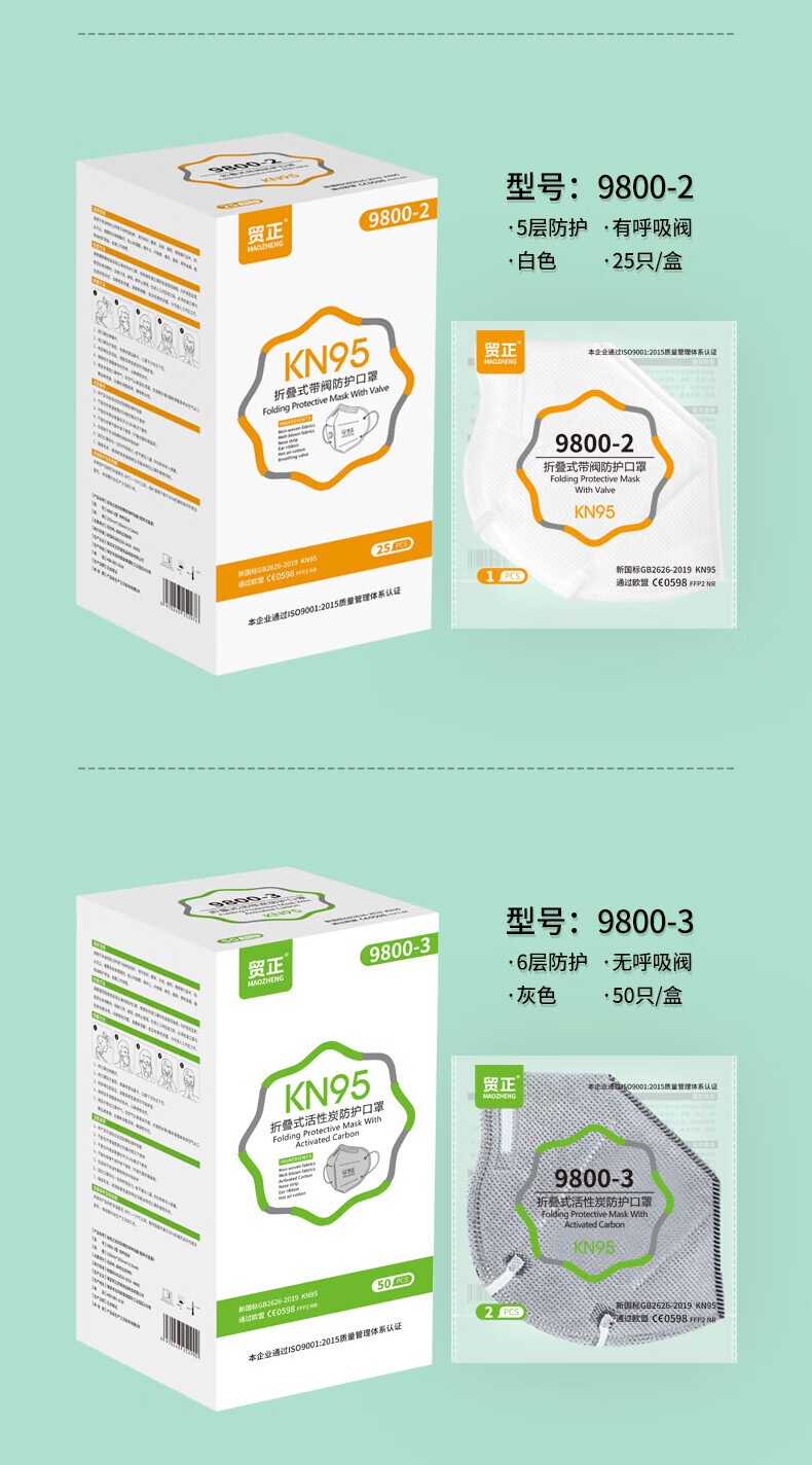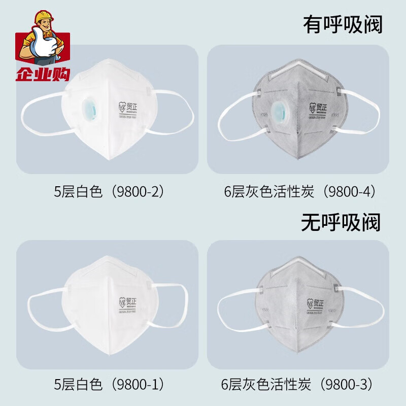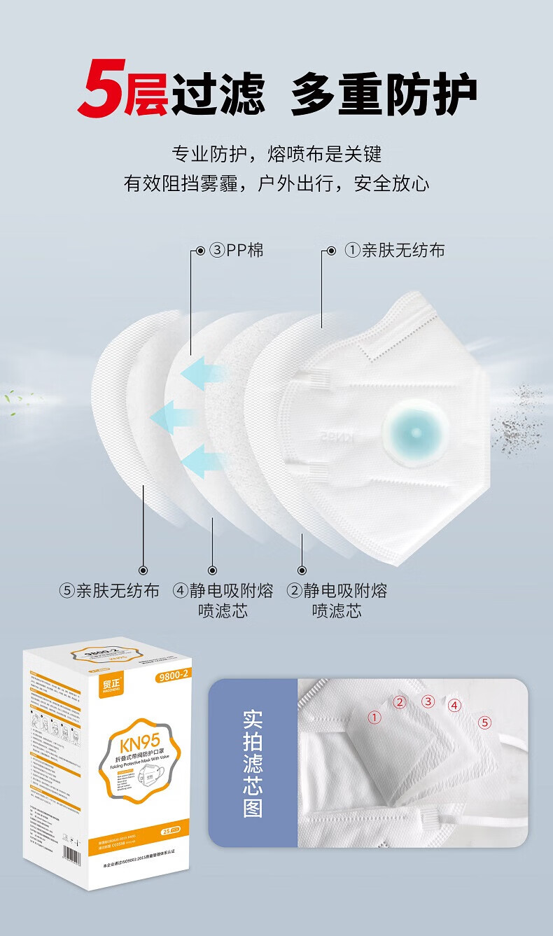 工业品  > 个人防护  > 呼吸防护  >  贸正/MaoZheng  >  贸正 KN95白色防尘带呼吸阀口罩一次性鼻梁处带海绵条工业粉尘打磨装修透气折叠耳戴 1只/包 25只/盒 9800-2 9800-2/盒