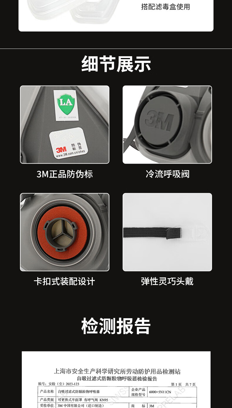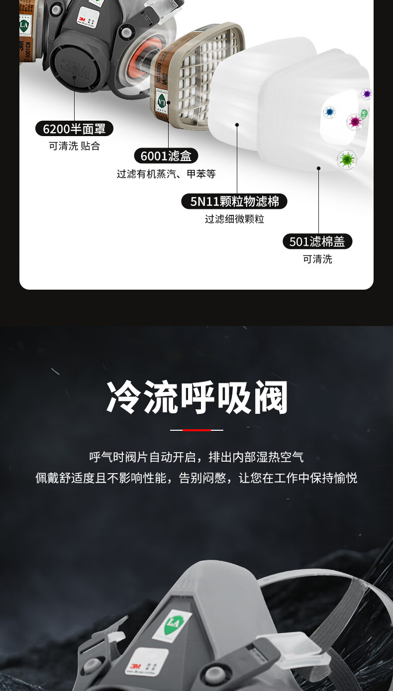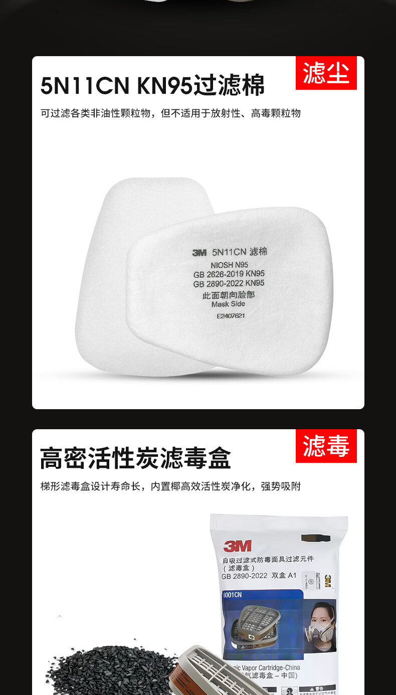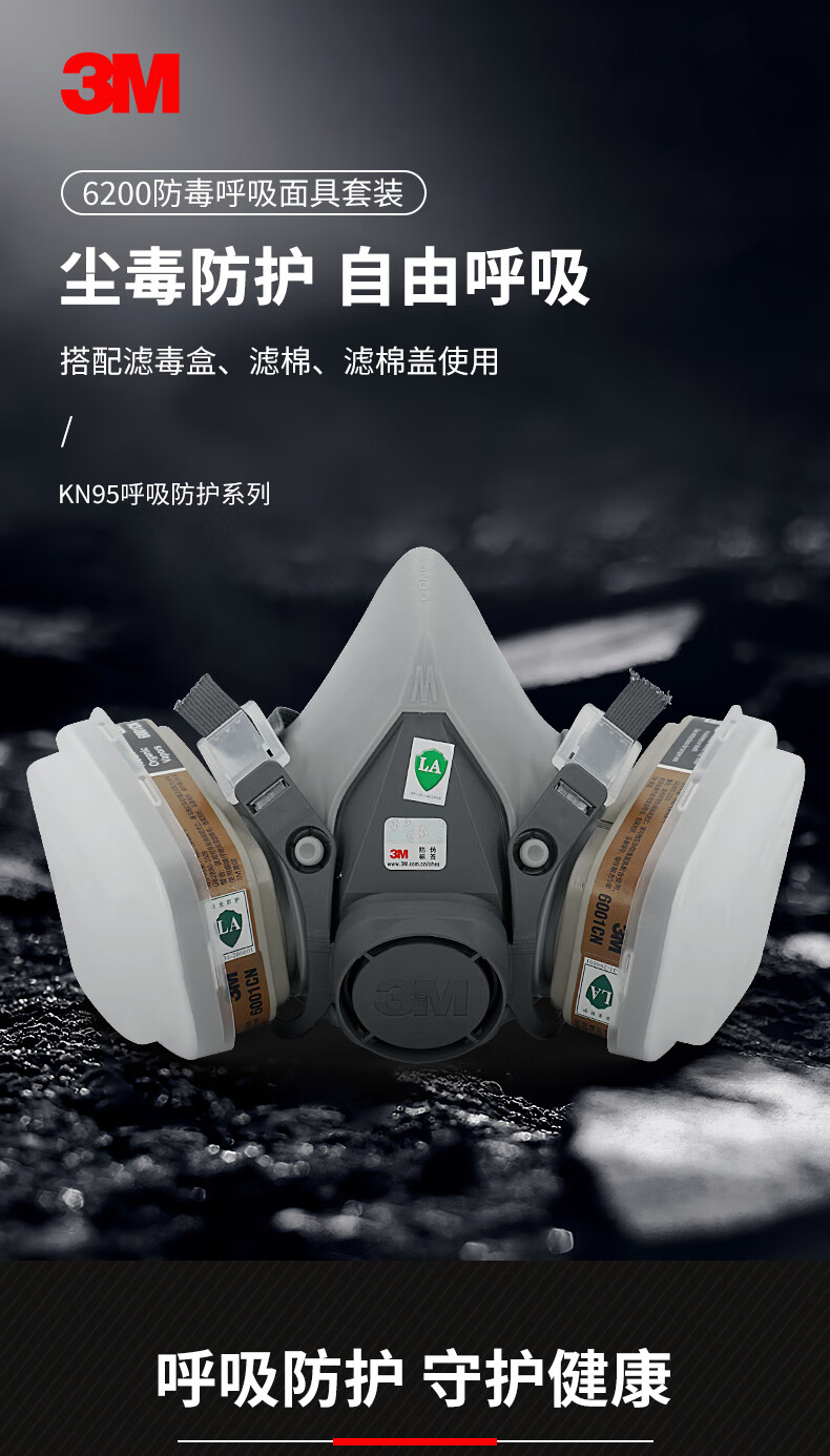 • 商品名称:3M防毒面具防甲醛防护有机气体等多种气体(6200+6006 七件套) 6200/个