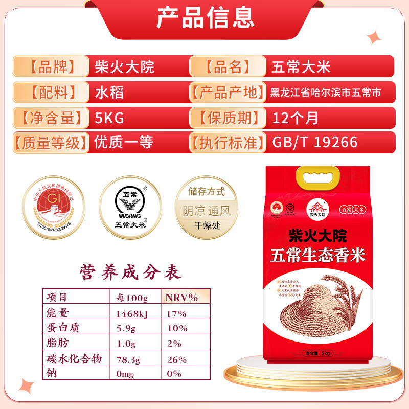 商品名称: 柴火大院 2025年新米 五常生态香米 五常大米 5kg( 东北大米 10斤) 五常生态香米 5kg/袋