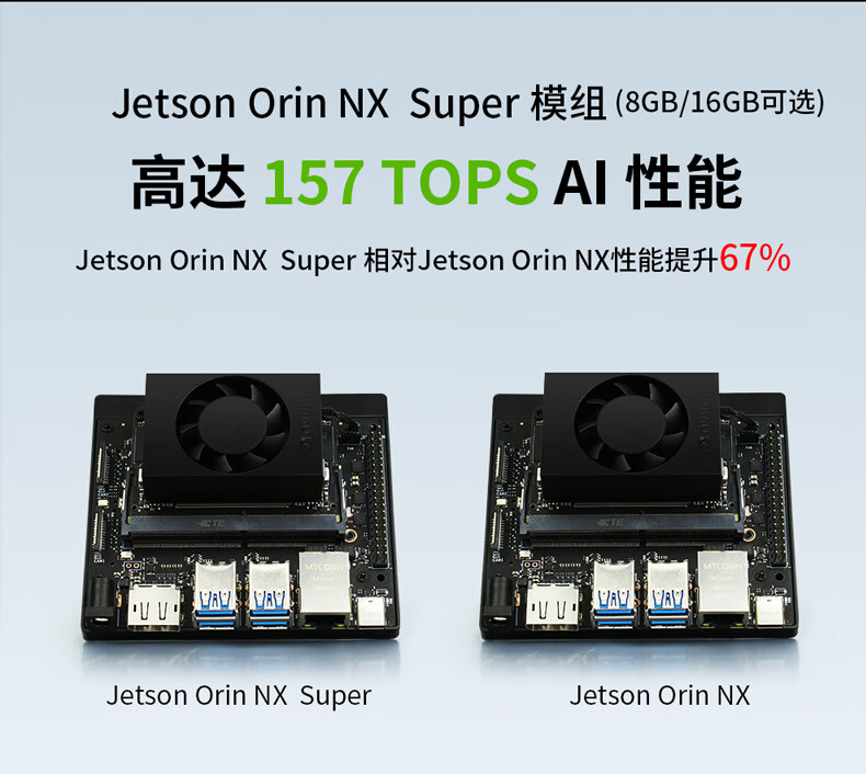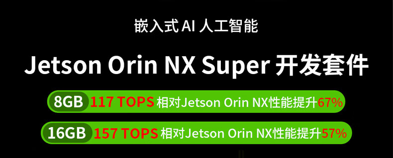 • 商品名称:英伟达(NVIDIA)Jetson ORIN NX Super开发套件AI人工智能 8/16GB核心 开发板 算力157Tops ORIN NX CLB 【16G】开发套件/个