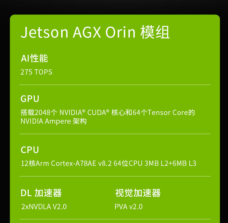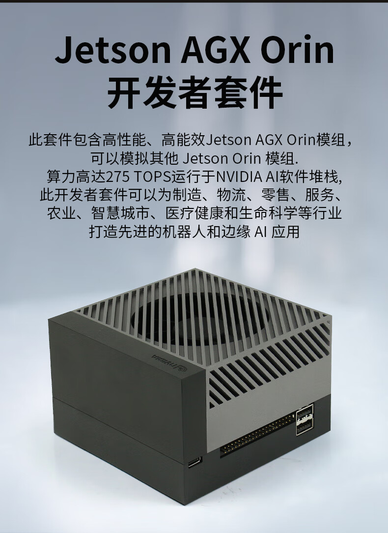 • 商品名称:英伟达(NVIDIA)Jetson AGX Orin Developer Kit 64GB官方原装开发套件 945-13730-0050-000 Jetson AGX Orin 64G开发套件/个