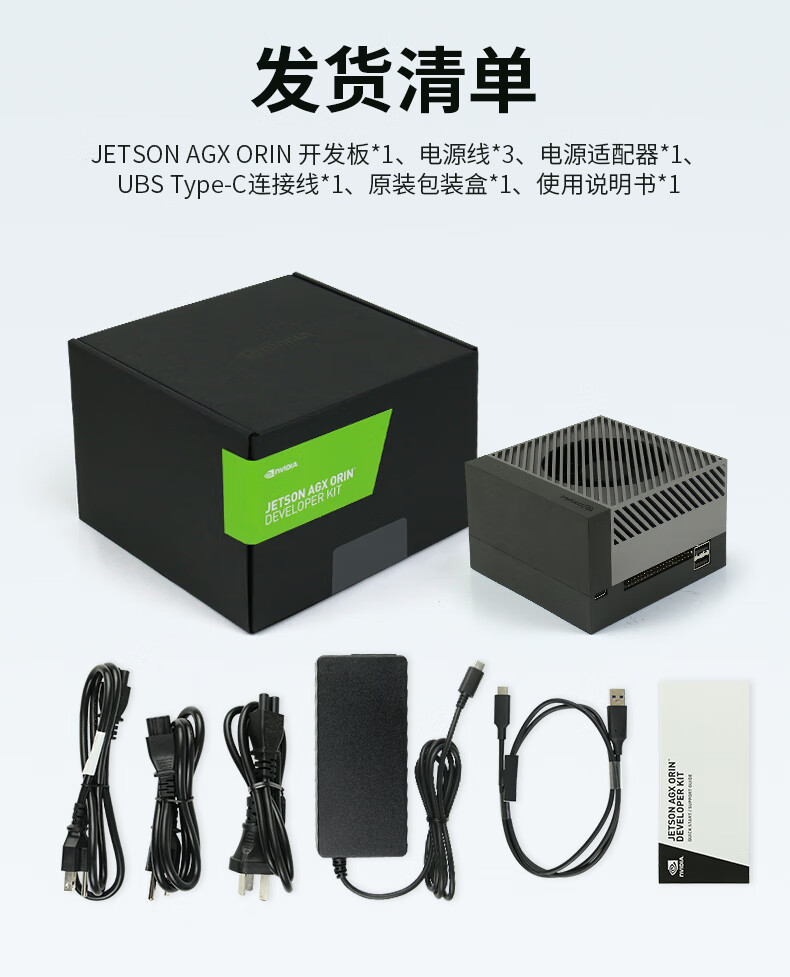 包装清单: Jetson AGX Orin 64G 官方开发套件