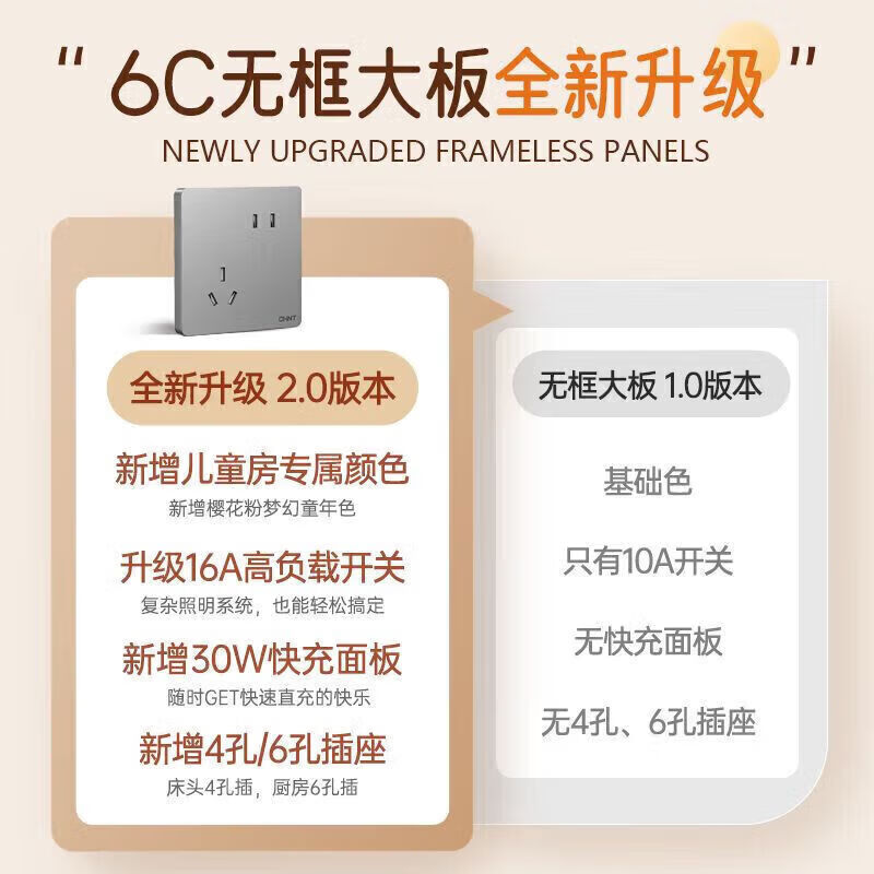 • 商品名称:正泰(CHNT)开关插座墙壁面板家用86型面板 空白面板 幻银灰 NEW6-C95105/个