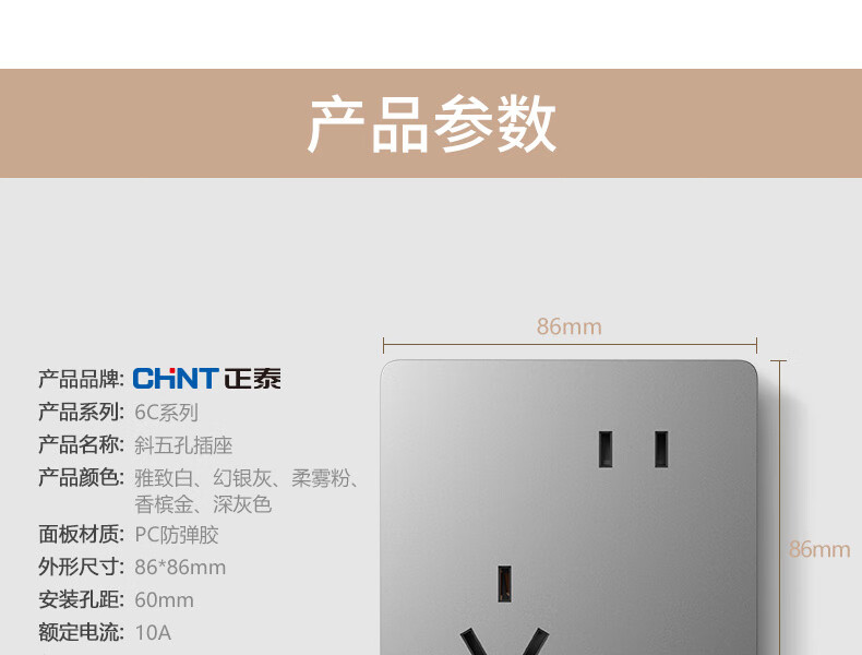 • 商品名称:正泰(CHNT)开关插座墙壁面板家用86型面板三开双控开关NEW6C幻银灰 开关插座NEW6-C00605/个