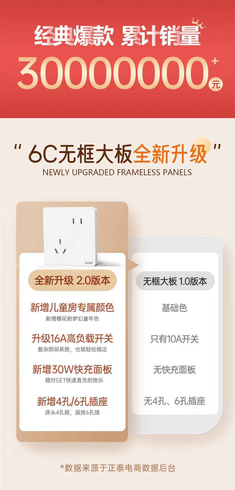 • 商品名称:正泰(CHNT)开关插座 二开双控开关 86型暗装插座面板 6C奶油白 开关插座NEW6-C00400/个