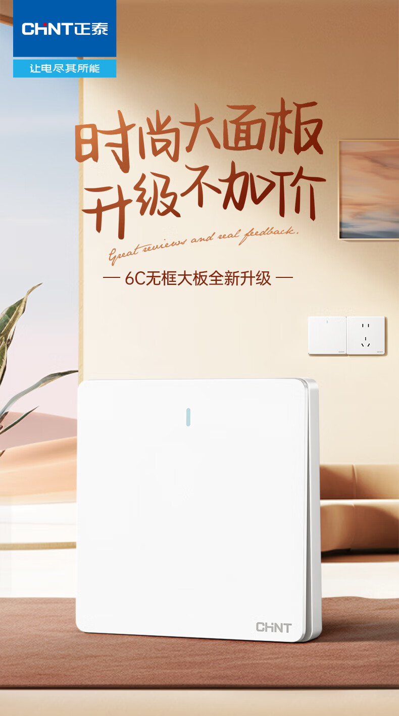 商品名称: 正泰(CHNT)开关插座 二开双控开关 86型暗装插座面板 6C奶油白 开关插座NEW6-C00400/个