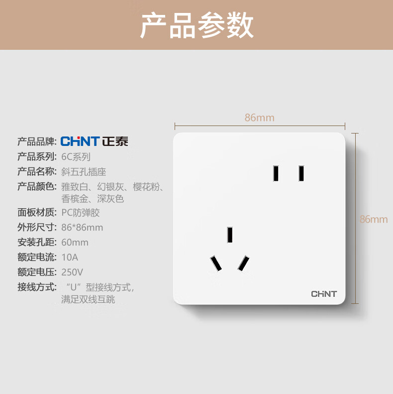 • 商品名称:正泰(CHNT)开关插座 五孔插座带2位USB插座 6C奶油白 开关插座NEW6-C13230/个