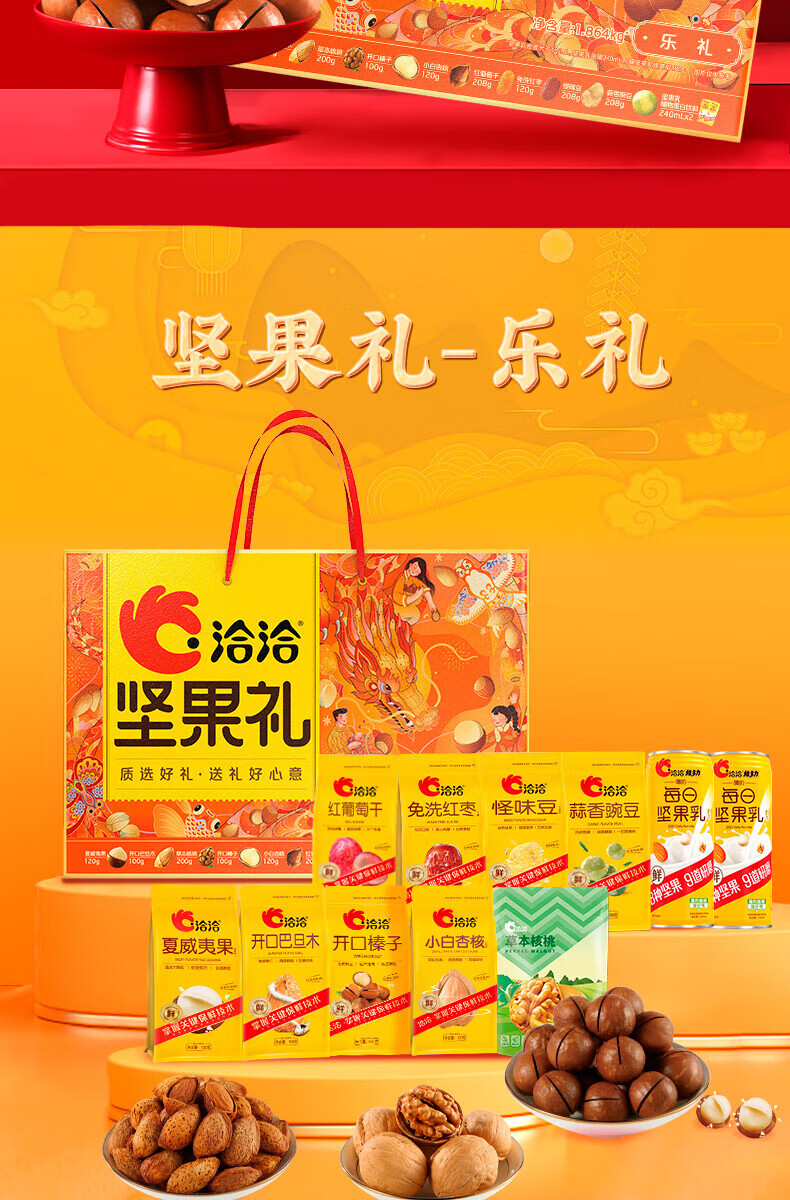 • 商品名称:洽洽袋装坚果礼盒坚果炒货周末休闲办公室零食小吃 坚果礼盒2.02kg 洽洽 福禄尊享坚果礼2.04kg(盒)-新款/件