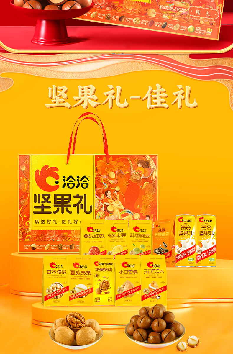 商品名称: 洽洽袋装坚果礼盒坚果炒货周末休闲办公室零食小吃 坚果礼盒2.02kg 洽洽 福禄尊享坚果礼2.04kg(盒)-新款/件