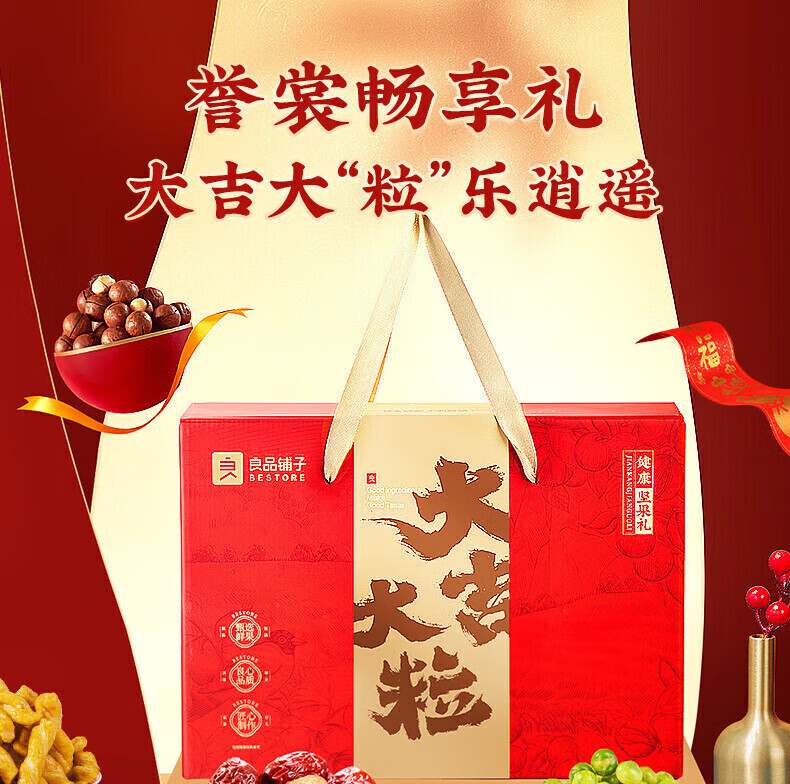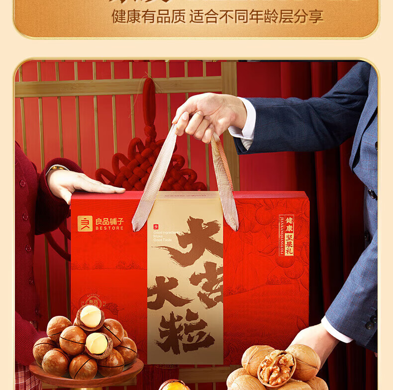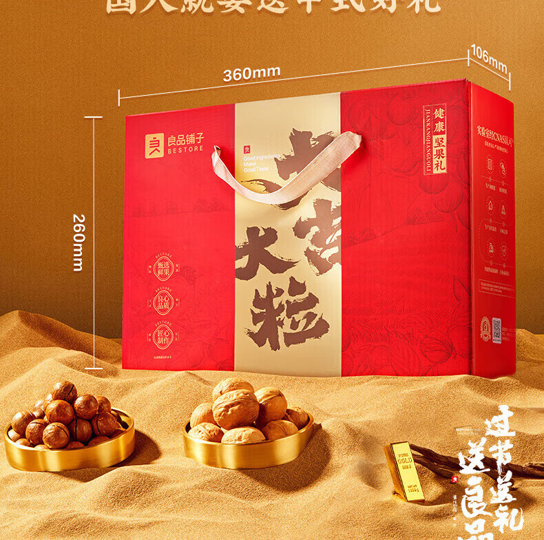 • 商品名称:良品铺子 坚果礼盒1614g 夏威夷果核桃每日坚果零食大礼包 团购超值福利 大吉大粒1614g/个