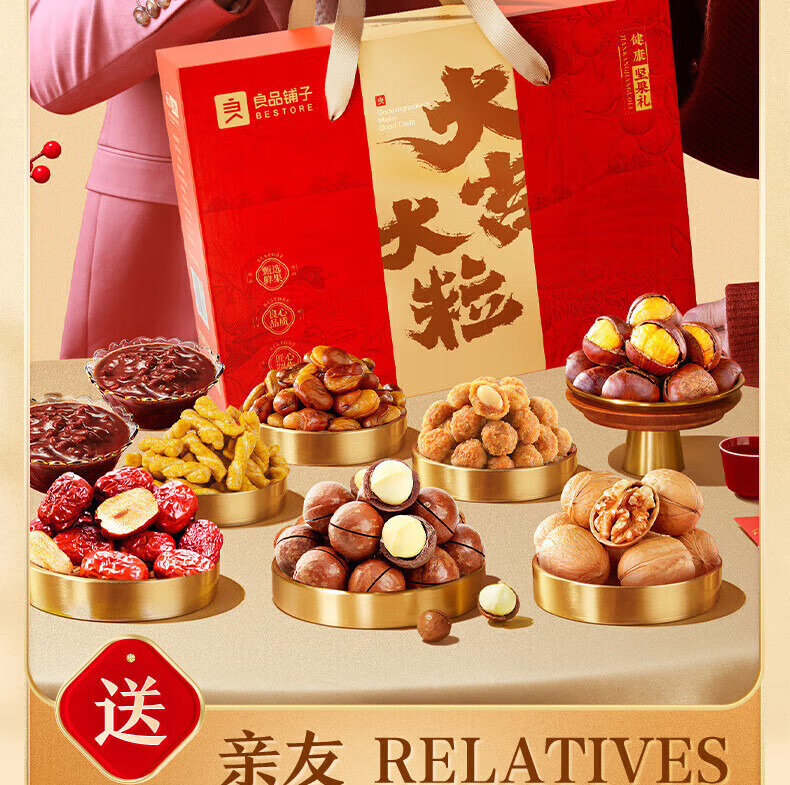 休闲食品  > 坚果炒货  > 坚果礼盒  >  良品铺子  >  良品铺子 坚果礼盒1614g 夏威夷果核桃每日坚果零食大礼包 团购超值福利 大吉大粒1614g/个